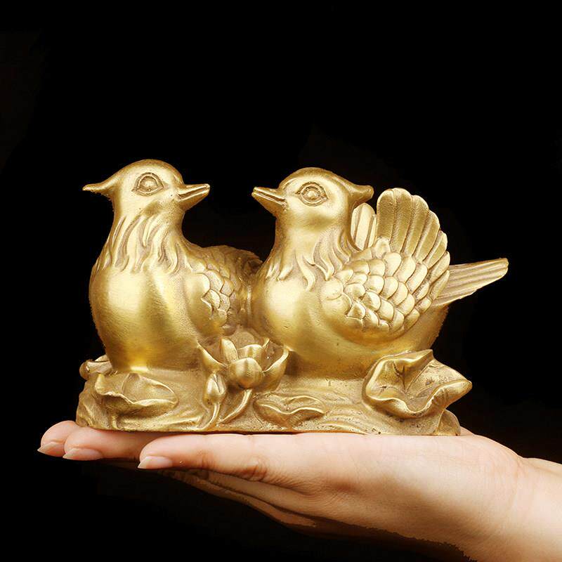 铜鸳鸯戏水家居装饰摆件 感情 夫妻要和睦 桃花结婚婚庆卧室礼品