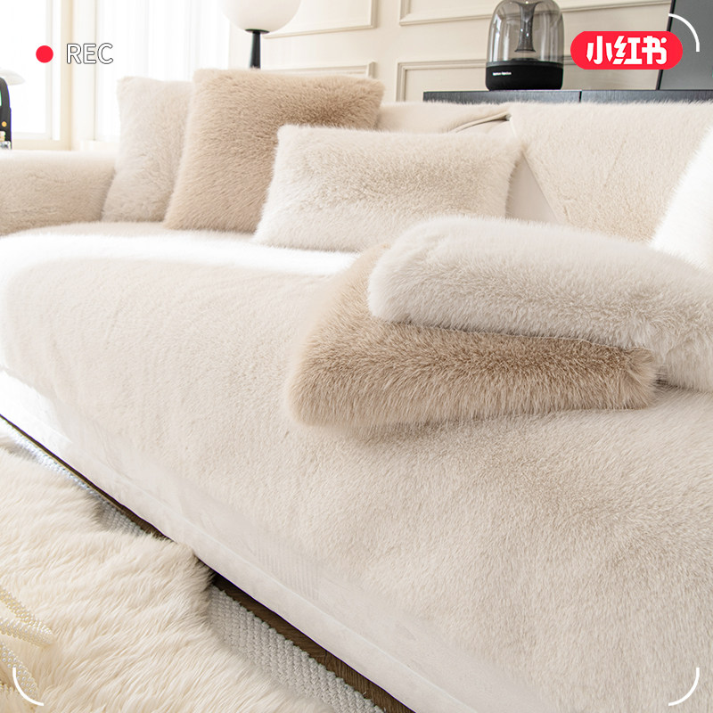 奶油风兔毛绒沙发垫冬季加厚毛绒新款2025冬款兔兔绒沙发套罩盖布