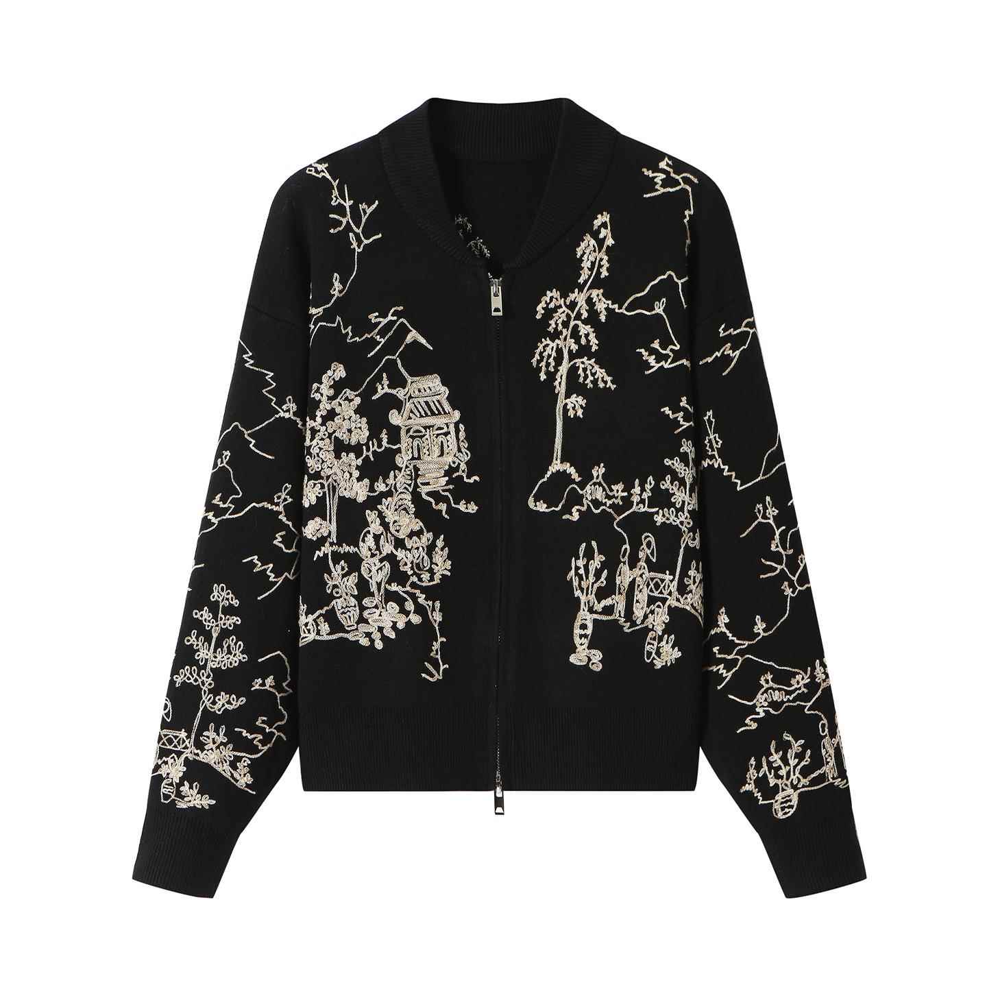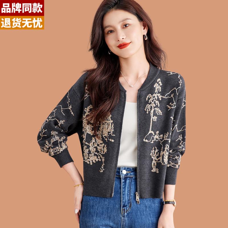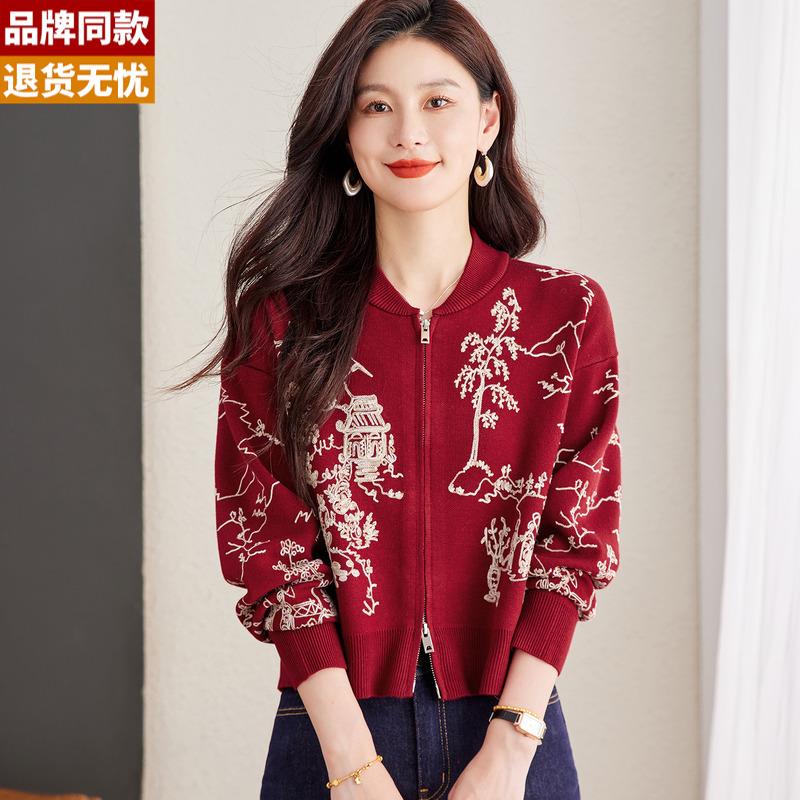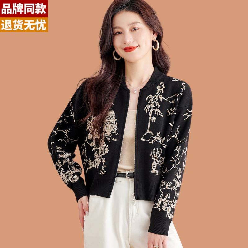 棒球服毛衣外套女秋2025新款小个子高腰外搭披肩绣花羊毛针织开衫