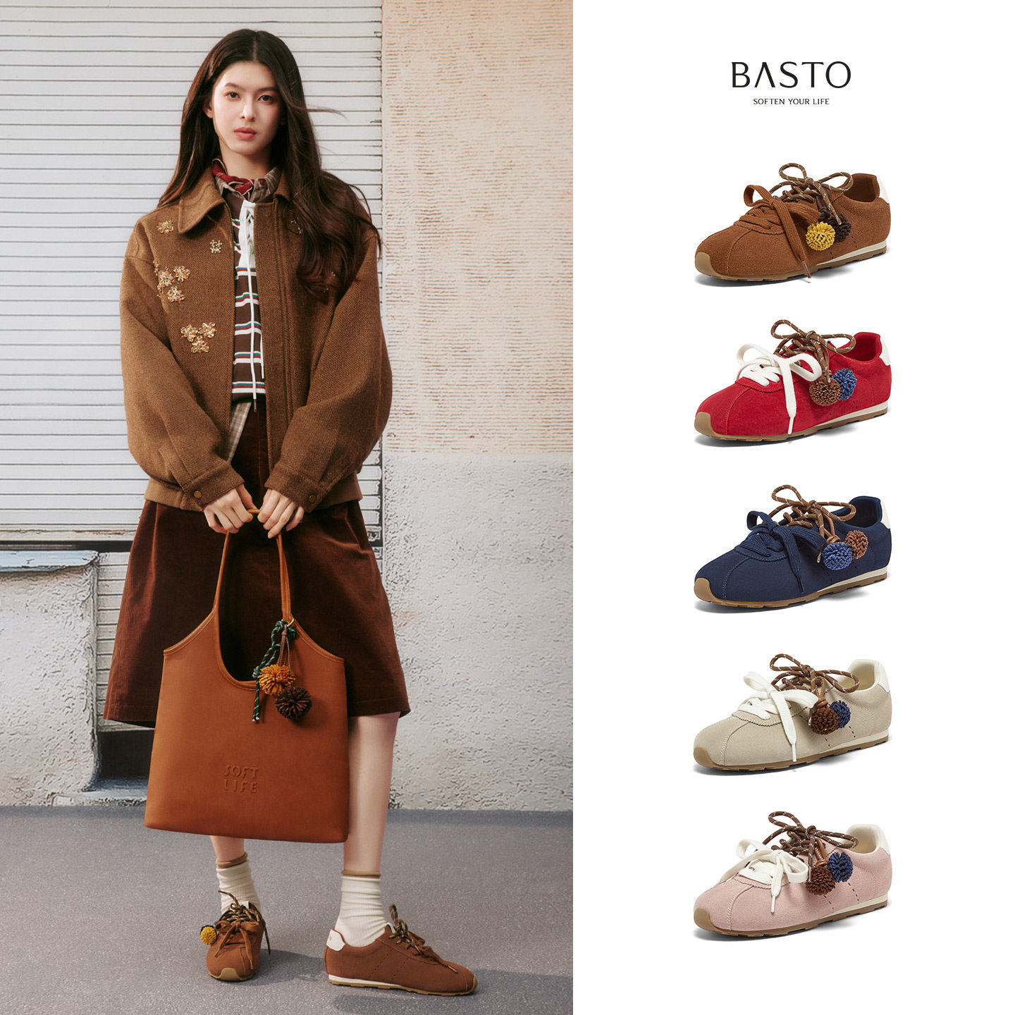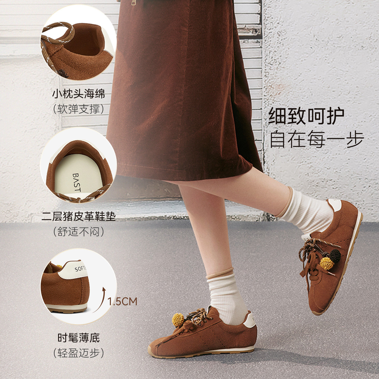 【小曲奇】百思图2025秋新款真皮德训鞋运动休闲松果女鞋A2715CM5