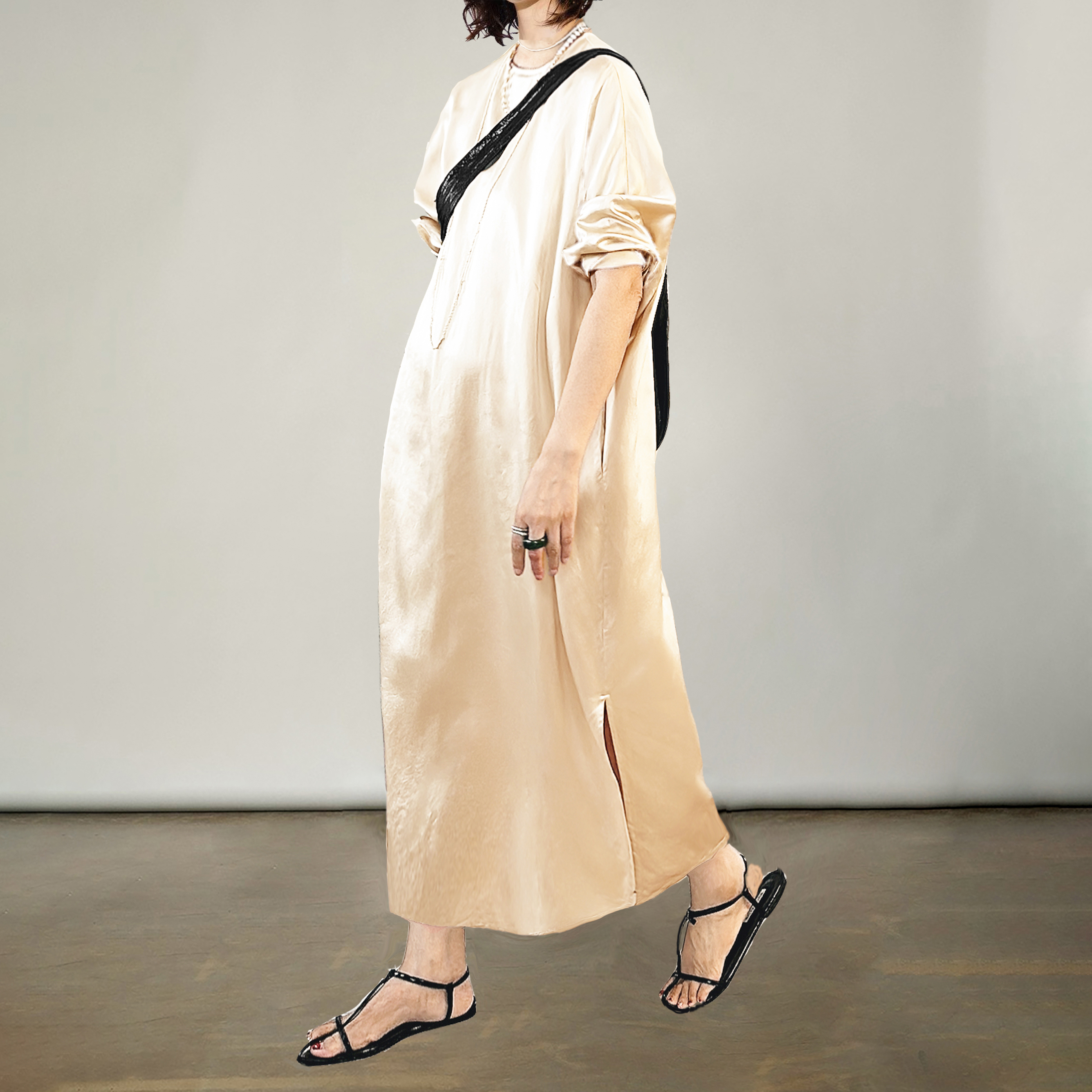 陈小满原创设计30姆米重磅真丝圆领连衣裙女春秋桑蚕丝宽松裙子