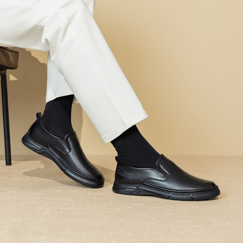 AOKANG奥康 春秋季新款商务休闲真皮软底一脚蹬舒适百搭男鞋