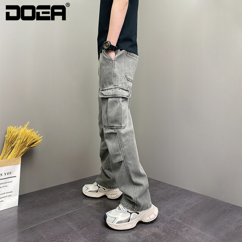 2025春季痞帅高级个性大口袋工装裤男士青年休闲灰色爆款牛仔长裤