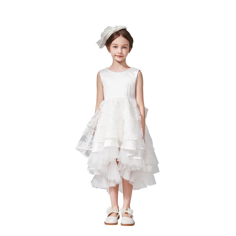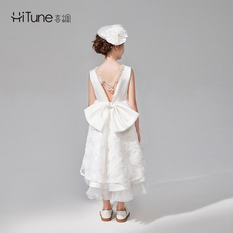 高端白色儿童礼服花童婚礼女童公主裙生日蓬蓬裙钢琴主持玫瑰女孩