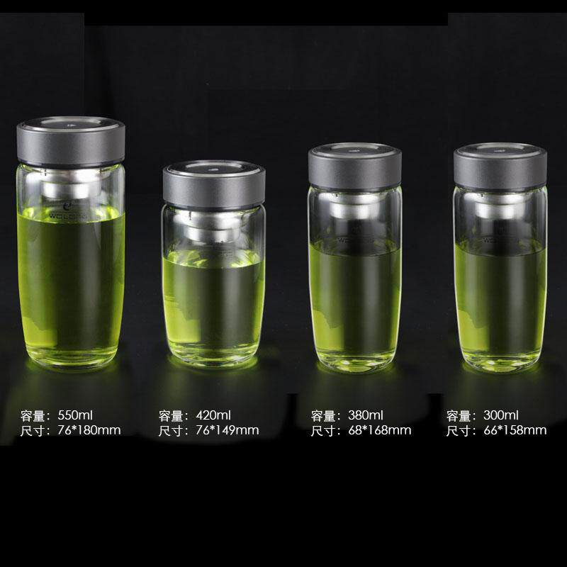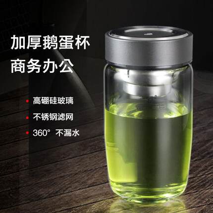 卧龙玻璃杯男大容量单层加厚水杯家用便携车载鹅蛋泡茶杯矮胖杯子