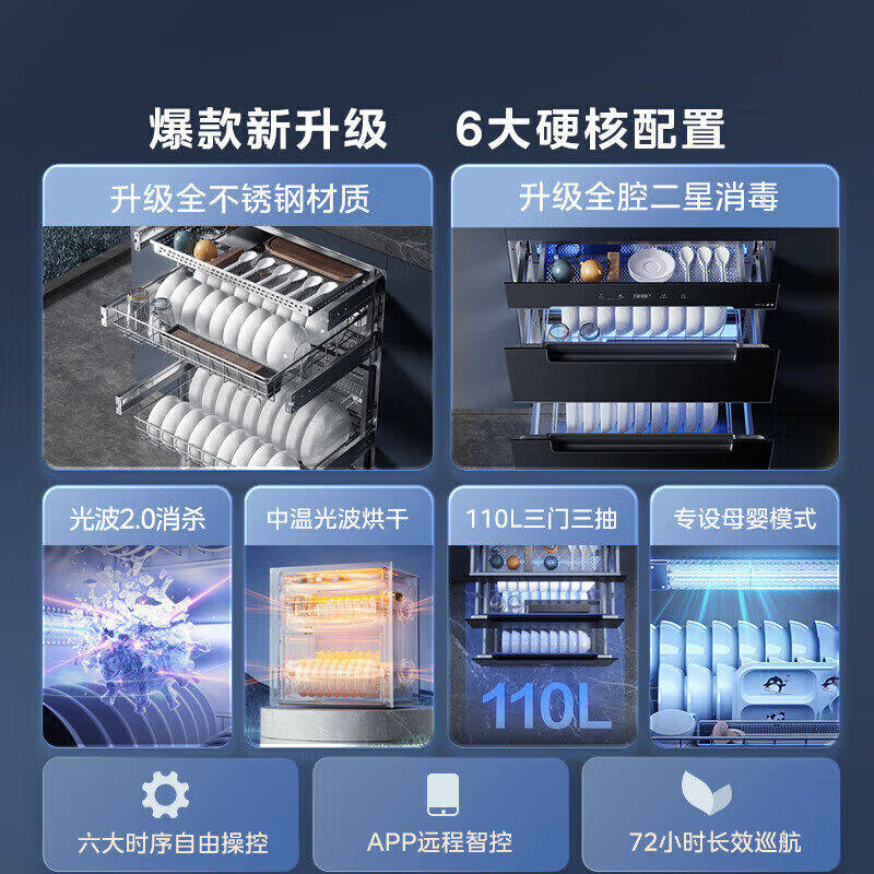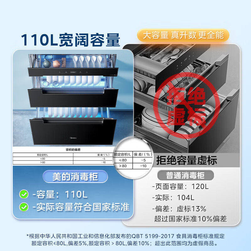 美的暖阳消毒柜二星级家用嵌入式110HQ2-Pro碗柜紫外线110L三层