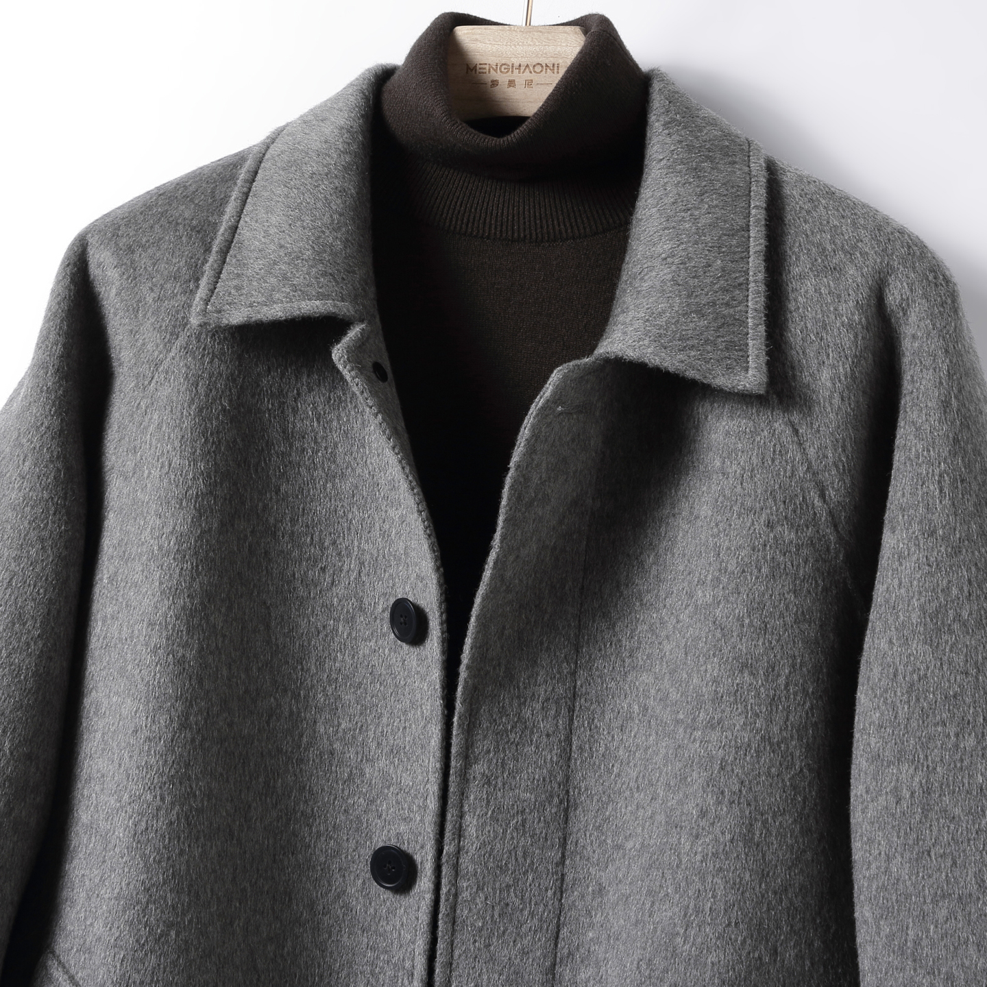 罗蒙秋冬新款翻领骆驼绒毛呢大衣男士中长款双面羊毛呢外套高级感