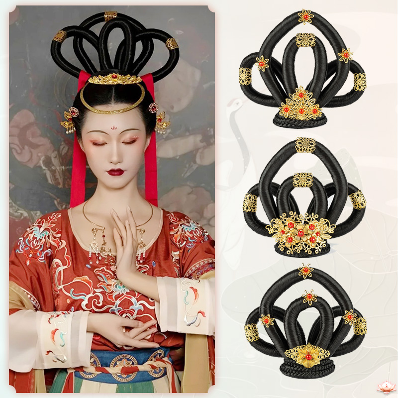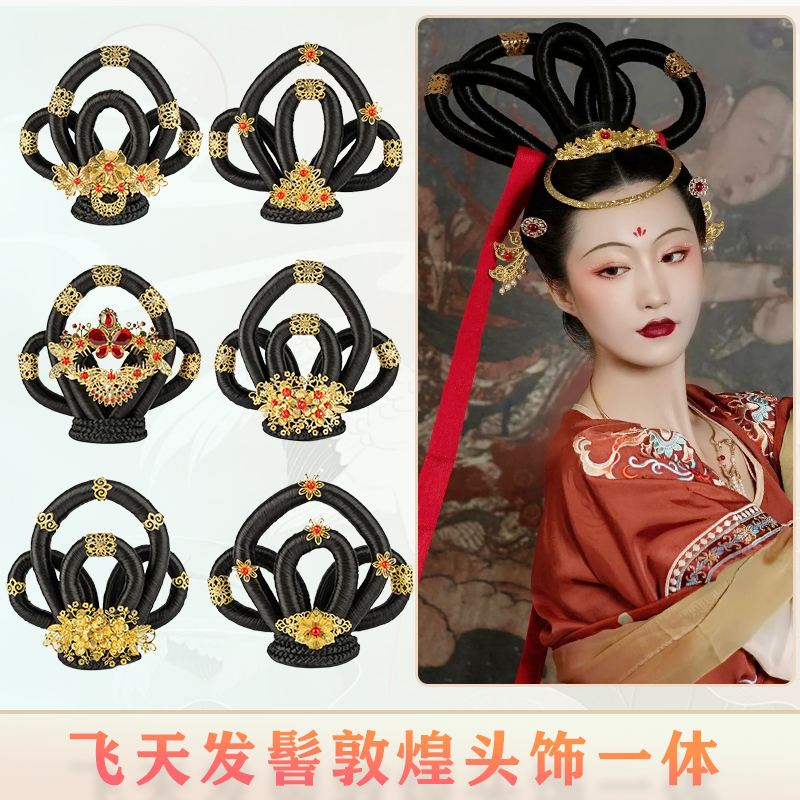 古装演出仙女飞天嫦娥发髻唐朝贵妃敦煌舞台演出发包发饰一体假发