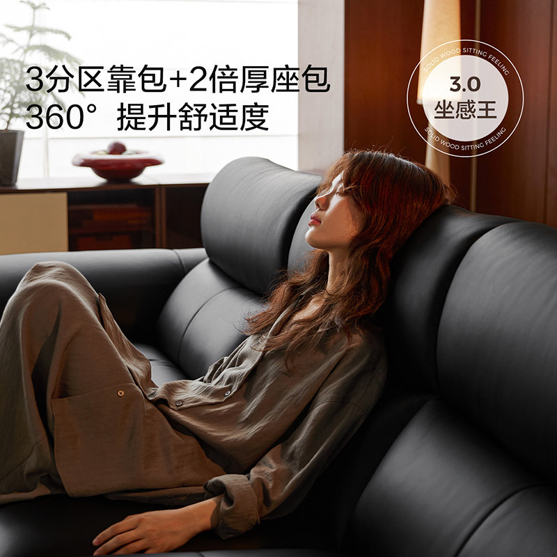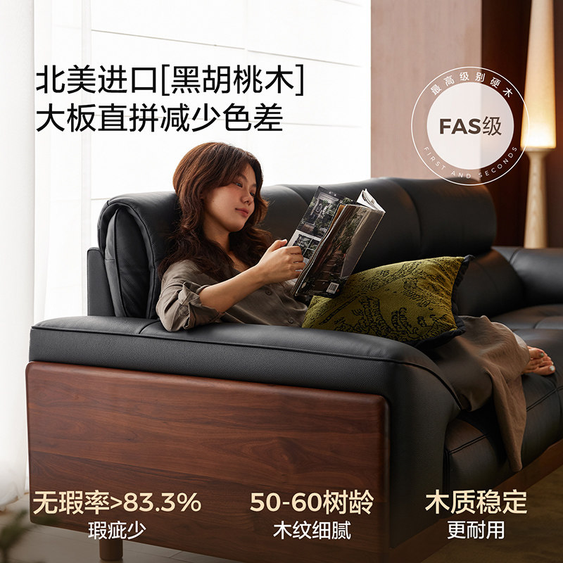 林氏家居黑胡桃木实木沙发客厅2025新款真皮沙发佛山木业可可系列