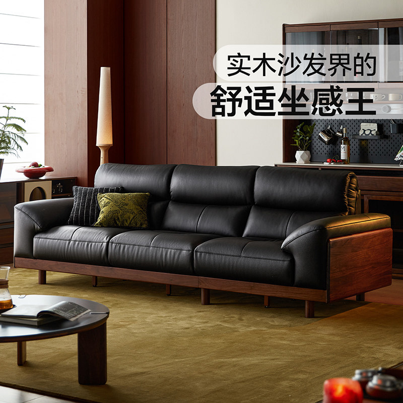 黑胡桃木实木沙发新款真皮沙发
