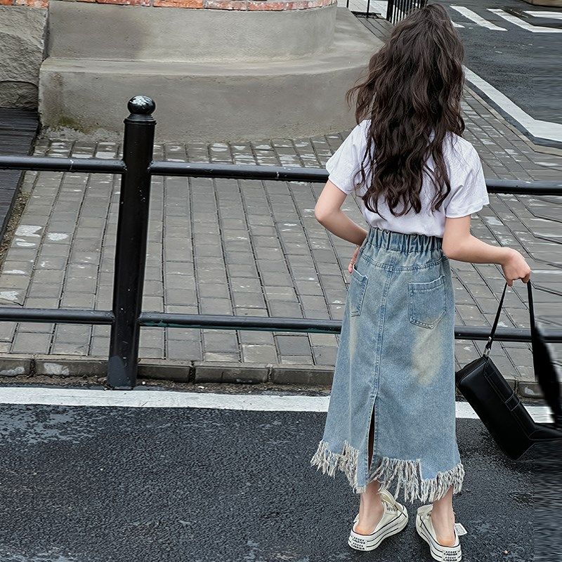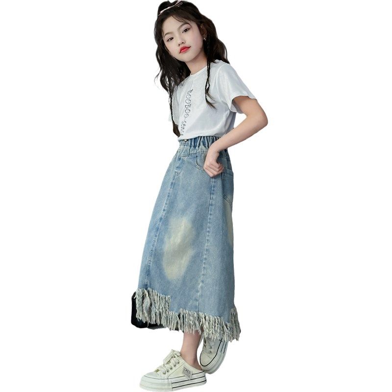 女童夏装套装2024新款女大童洋气短袖T恤牛仔裙儿童夏季薄两件套