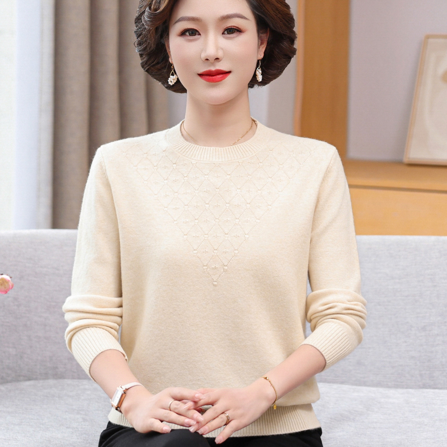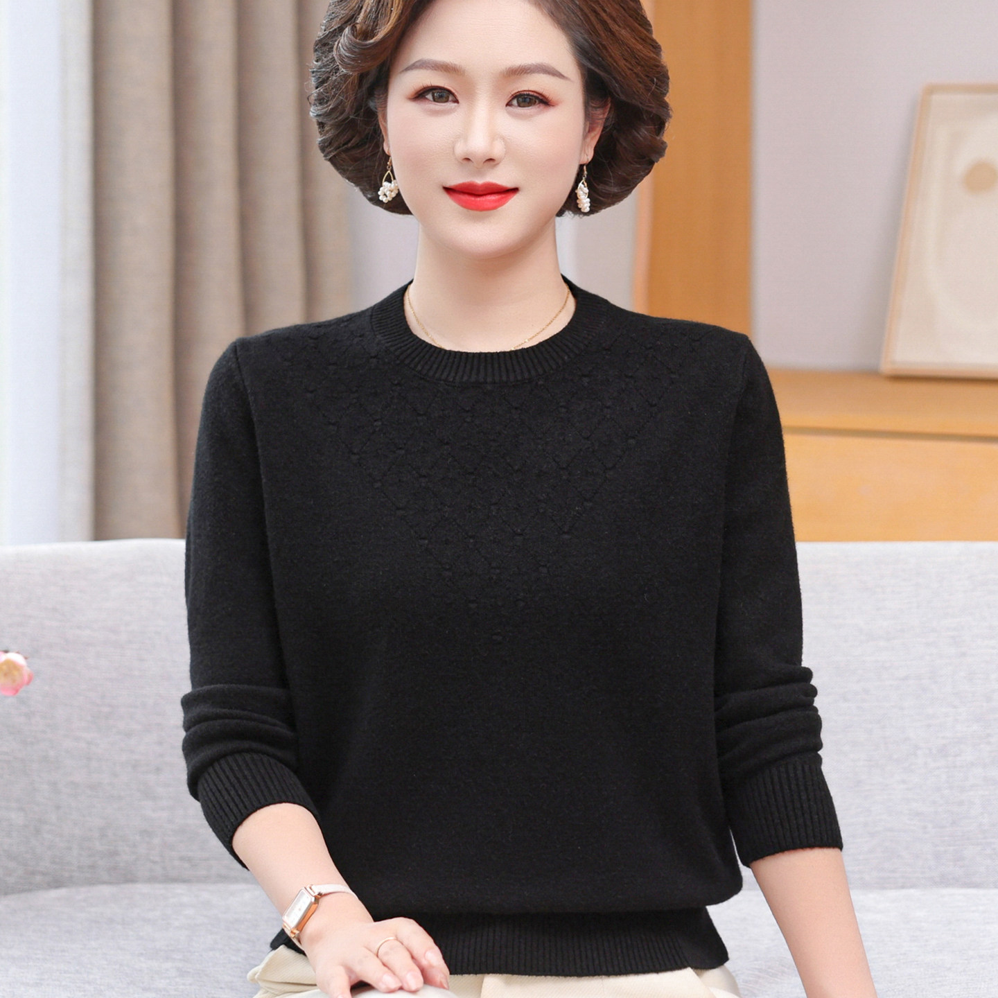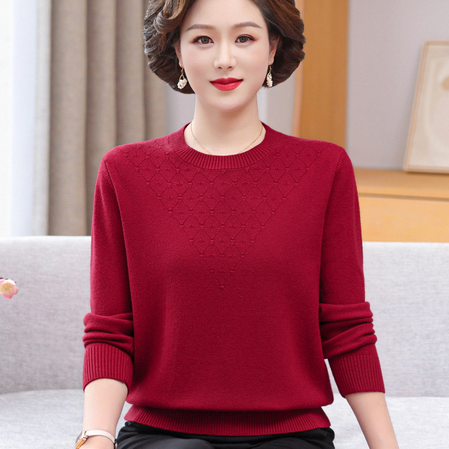 中老年女装春秋薄款毛衣打底衫