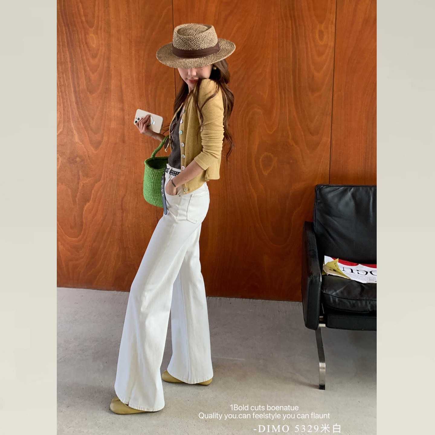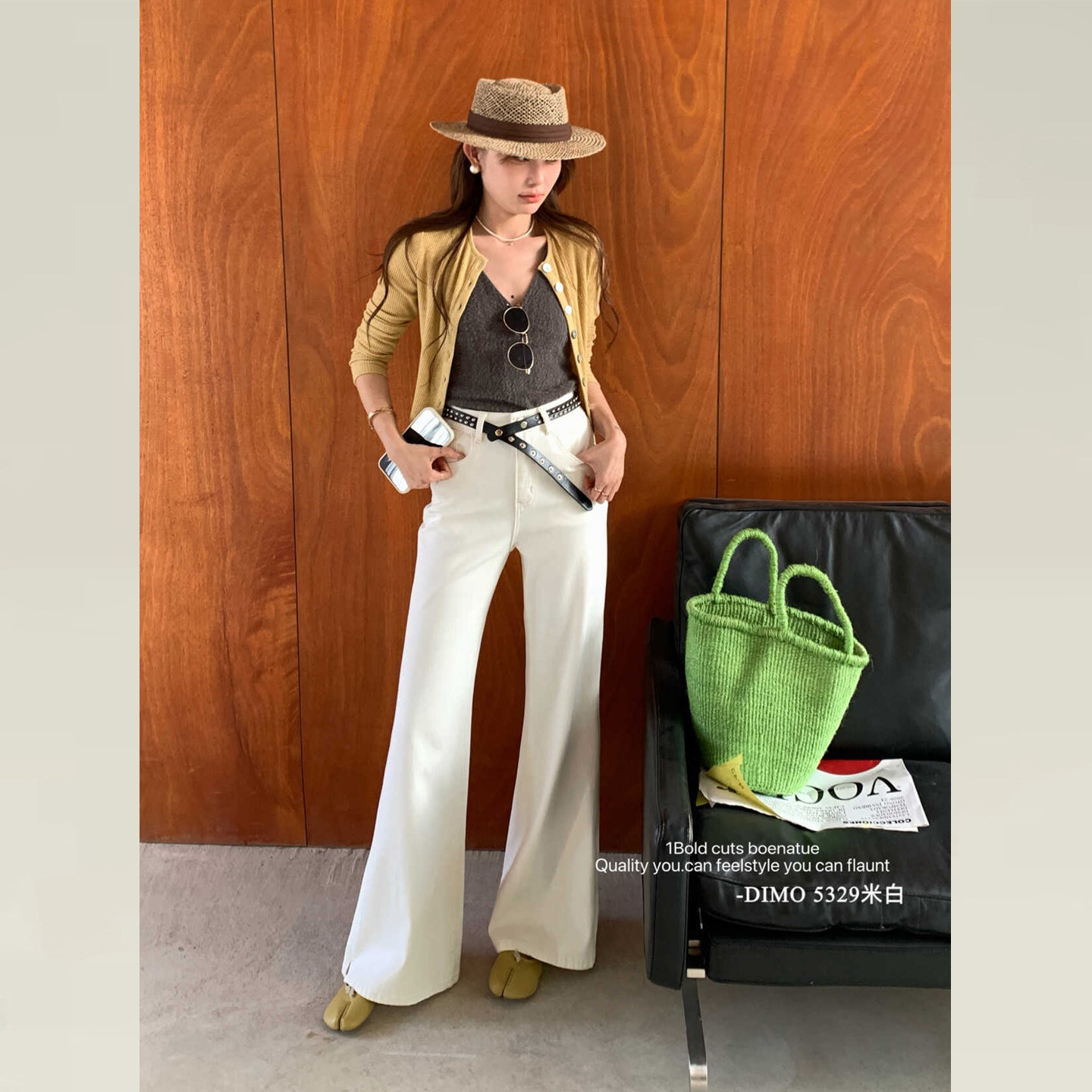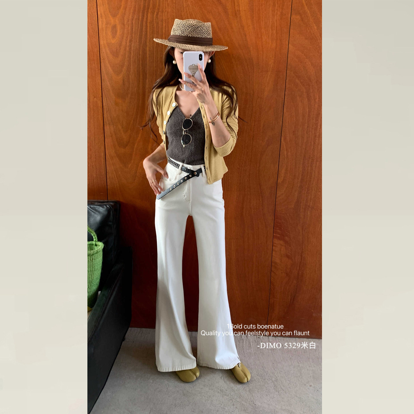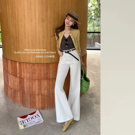 DIMO白色微喇牛仔裤女2026早春新款版型超好看的不贴腿喇叭裤5329