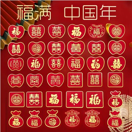 红色福字粘贴挂钩强力粘胶