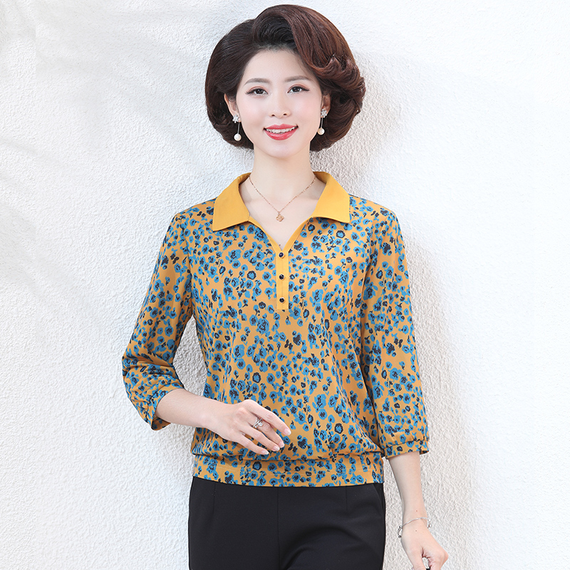妈妈秋装衬衫洋气时尚弹力大码显瘦台湾纱中老年人春夏小衫上衣女