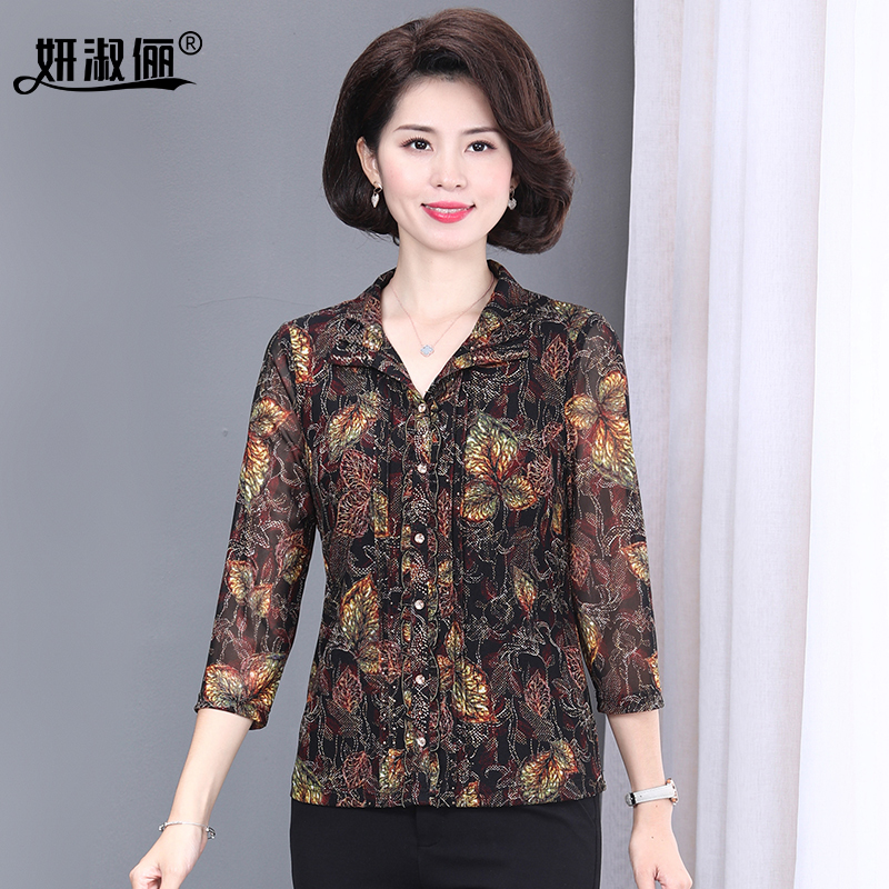 中老妈妈洋气高档台湾纱衬衫上衣