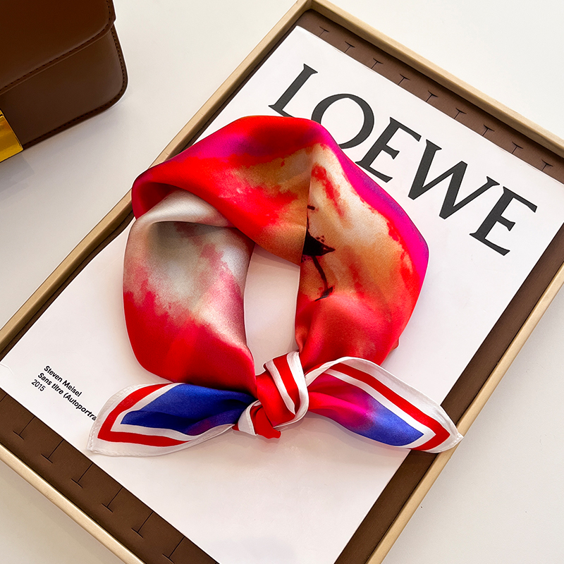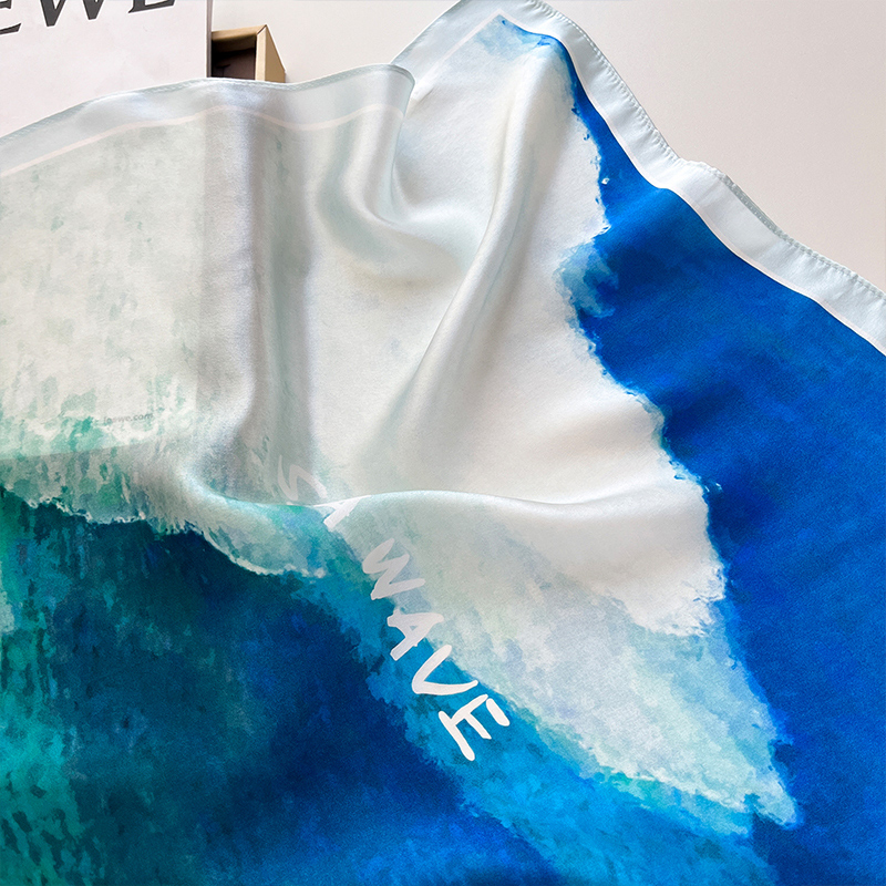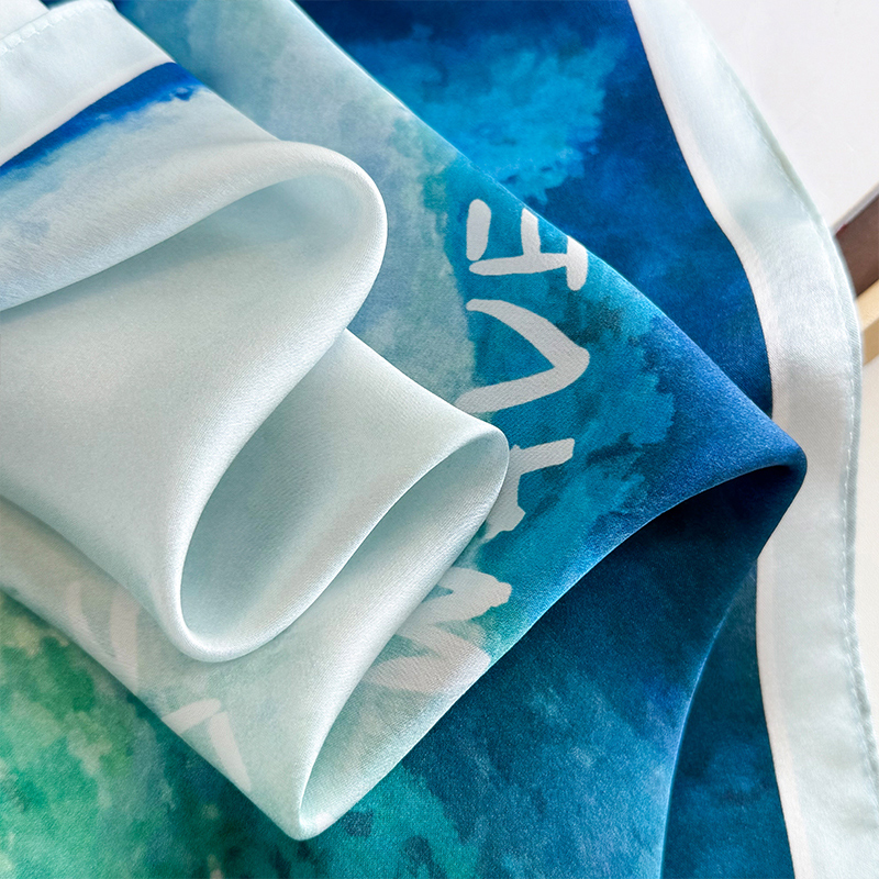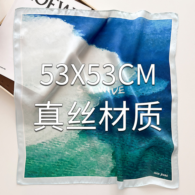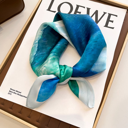 真丝桑蚕丝小方巾丝巾女春秋冬季薄围巾搭配衬衫护颈围脖纱巾蓝色