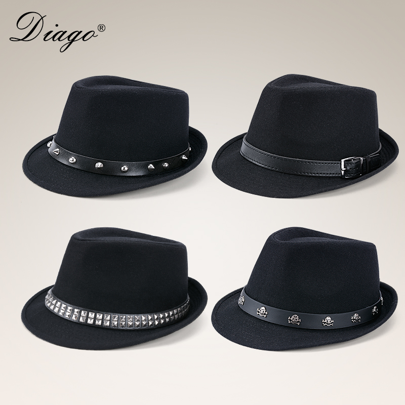 春秋季英伦遮阳礼帽大码羊毛呢帽子男女绅士爵士帽黑色复古新郎帽