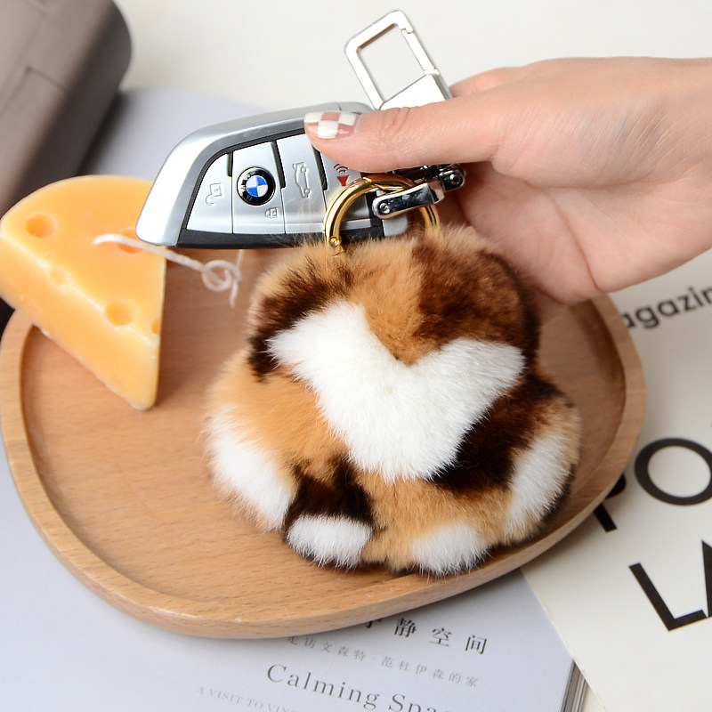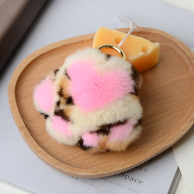 真獭兔毛皮草豹纹小猫爪汽车钥匙扣球挂件毛绒可爱书包包礼物挂饰