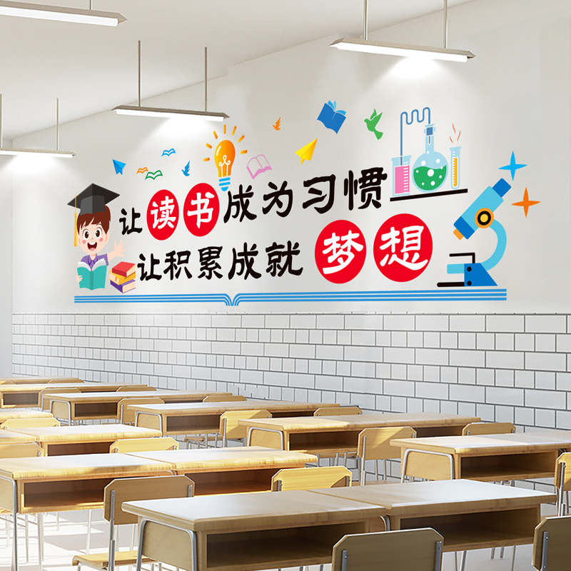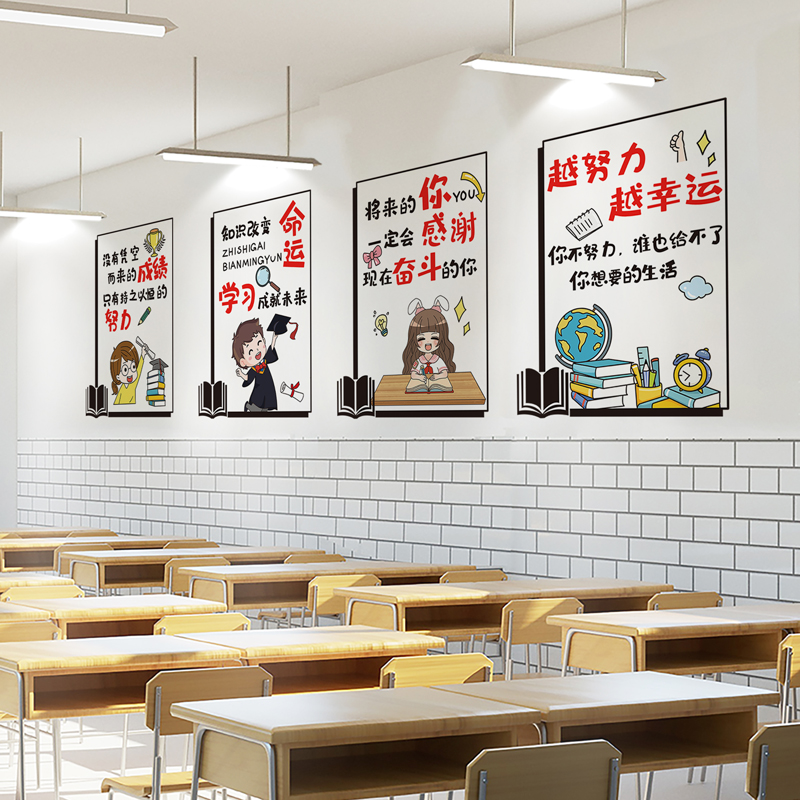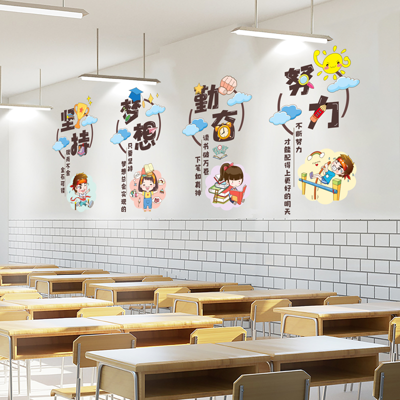 励志标语墙贴纸自粘学校教室装饰班级文化墙面布置托管班墙壁贴画