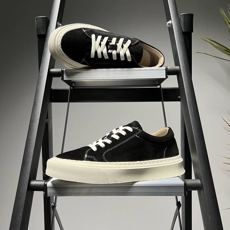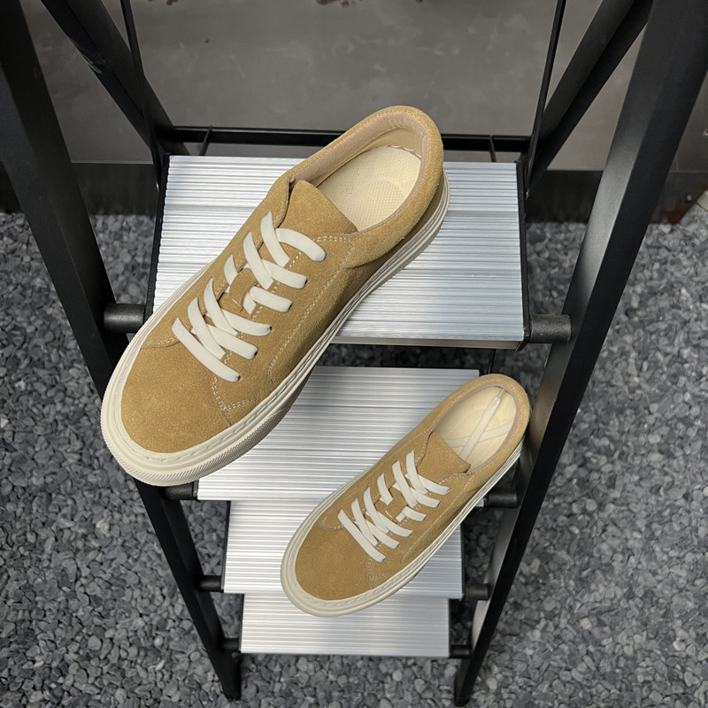 男士低帮板鞋2024秋季新款真皮系带圆头休闲百搭素面纯色日系男鞋