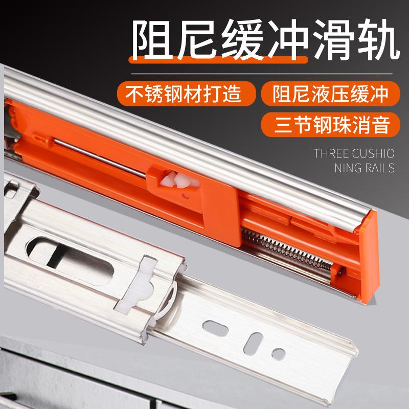三节不锈钢抽屉滑道轨道阻尼缓冲滑轨橱柜衣柜三节轨加厚导轨定制
