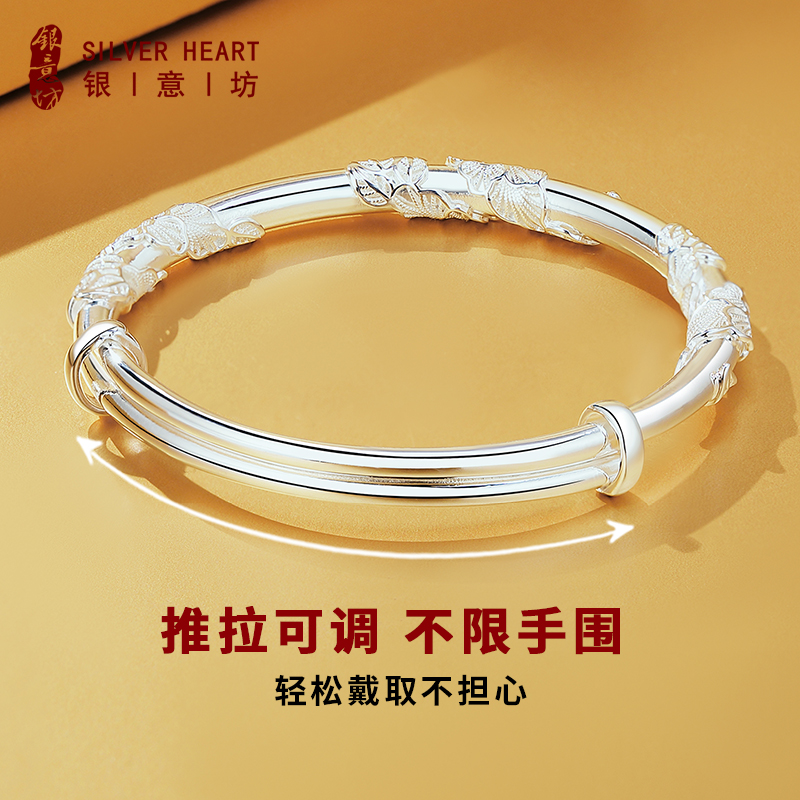 女士年轻款银手镯2025新款纯银9999实心银镯子送女友浪漫实用礼物