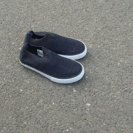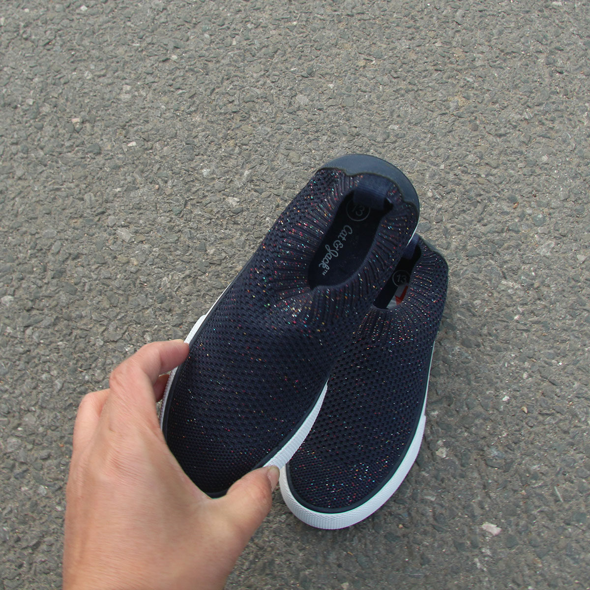 满2包邮12.21瑕疵女童低帮一脚蹬针织网眼透气休闲帆布亲子鞋