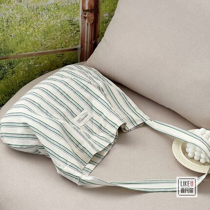 新款日韩拼接条纹小清新帆布袋简约学生上课通勤单肩斜挎布包