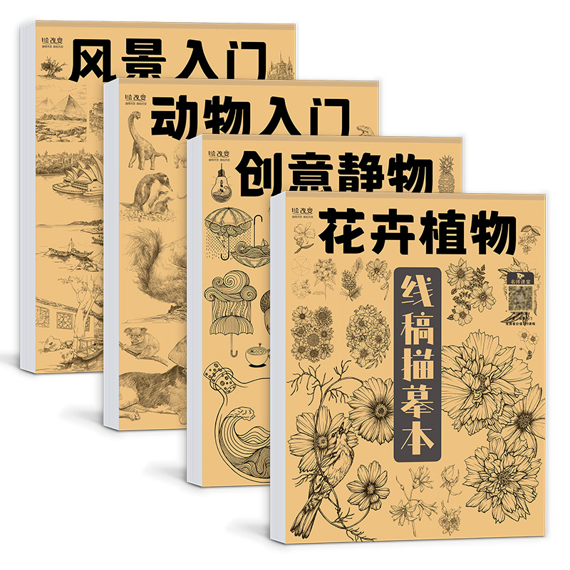 创意静物动物花卉风景线稿描摹本入门画本彩铅漫画绘画描画儿童画画自学教程动漫涂鸦素描基础手绘临摹画册