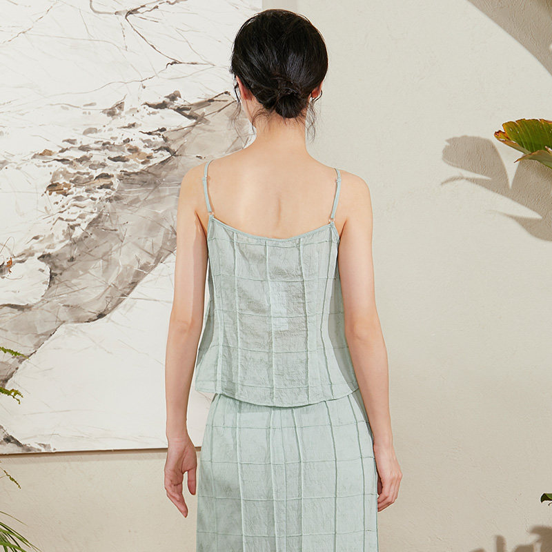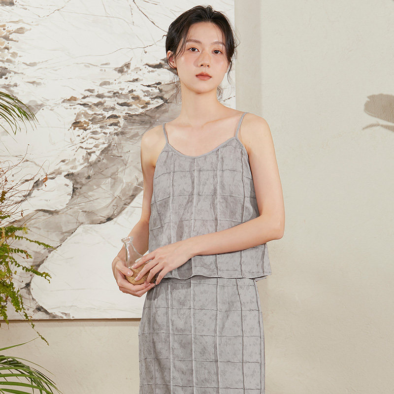 TALASA商场同款提花外穿吊带女2026年夏新款立体格子设计内搭小衫