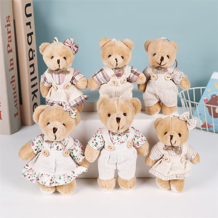 可爱麻布情侣泰迪熊毛绒玩具挂件小熊熊女生包包钥匙扣挂饰布娃娃
