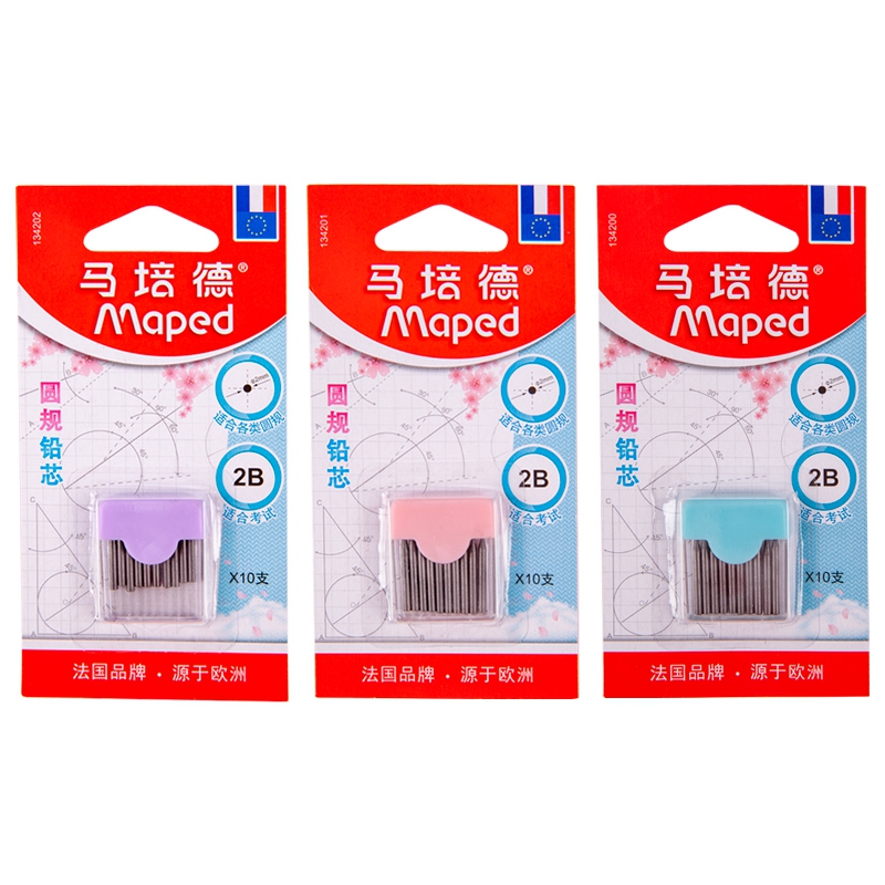法国MAPED马培德圆规替换芯2B铅芯考试用绘图文具2mm通用铅芯小巧便携装替芯10根优质石墨不断芯学生学习文具