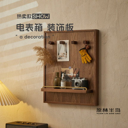 黑胡桃电表箱遮挡装饰画弱电闸开关置物架中式电闸箱配电箱遮丑画