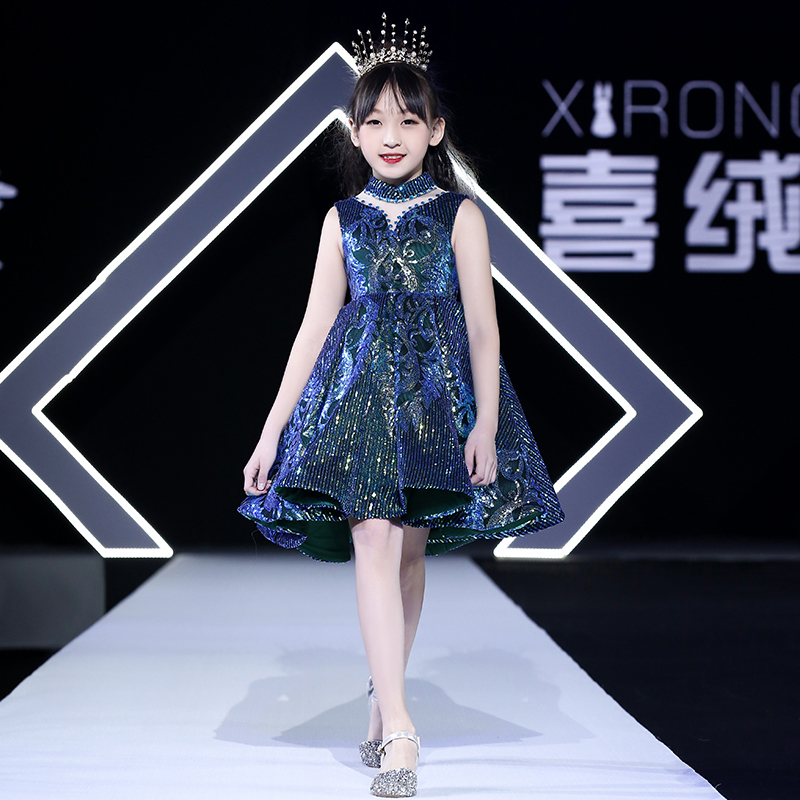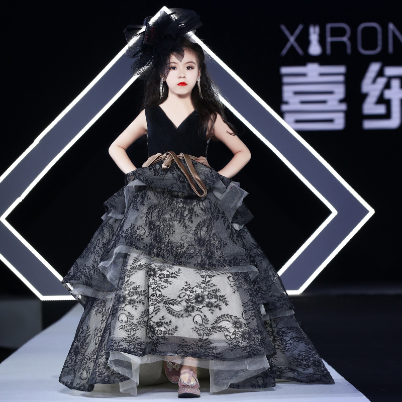 女童礼服轻奢走秀舞台演出钢琴演奏长裙儿童主持人轻奢模特公主裙