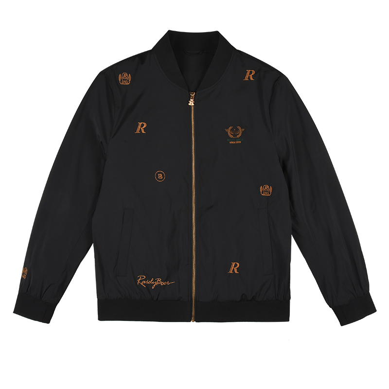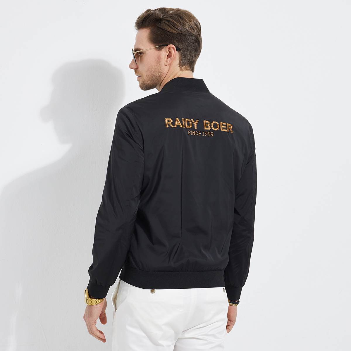 雷迪波尔男装夹克春秋季新品针织棒球领修身刺绣纯色薄款上衣男
