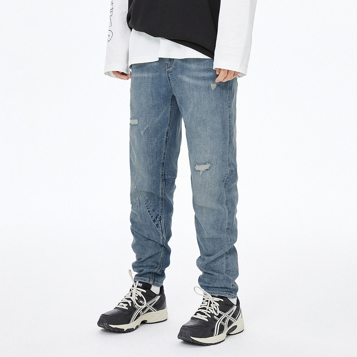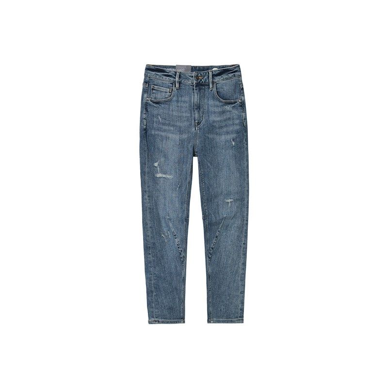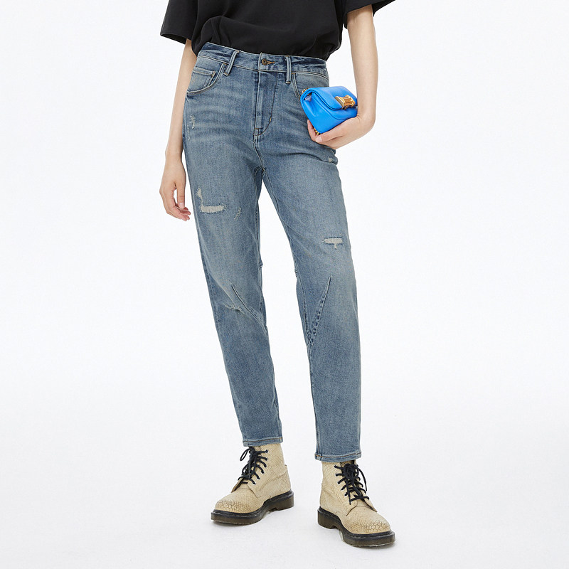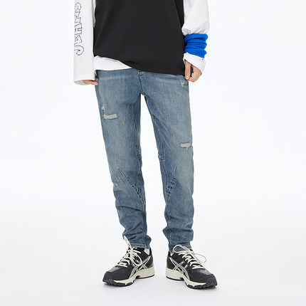 中性款牛仔裤ABLEJEANS男女同款水洗潮流立体锥形裤破洞九分裤