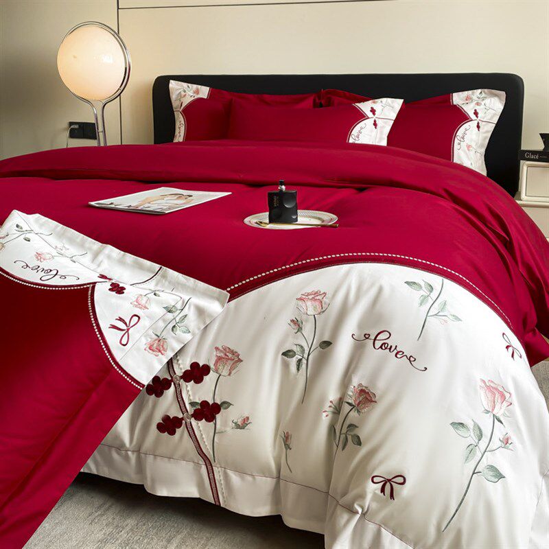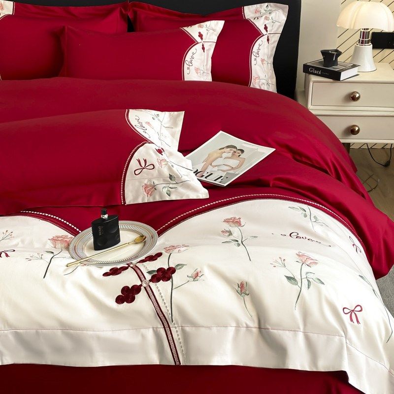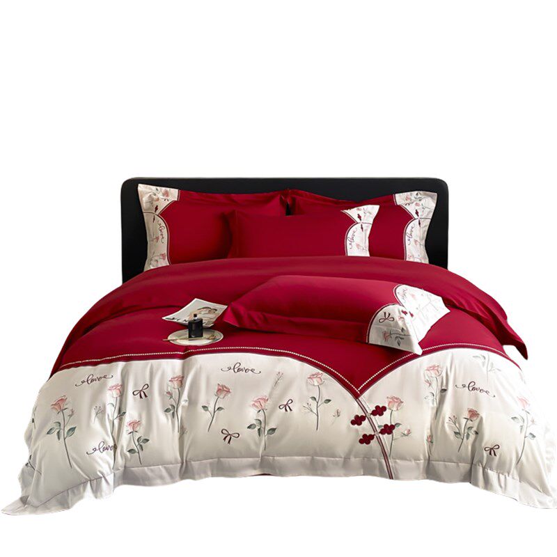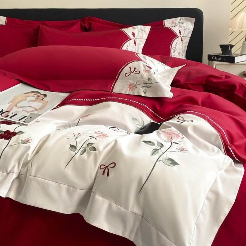 长绒棉结婚四件套大红色床单被套新婚庆床上用品婚房喜被