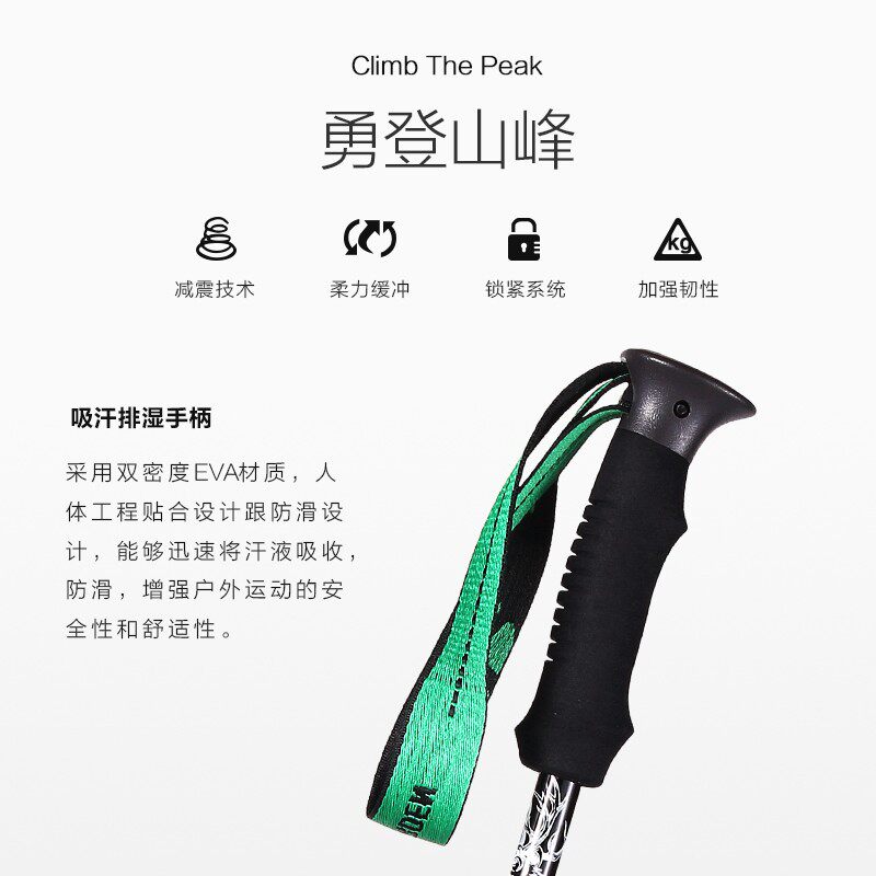 牧高笛户外铝合金轻便伸缩外锁手杖登山杖直柄徒步爬山拐杖纳罗亚