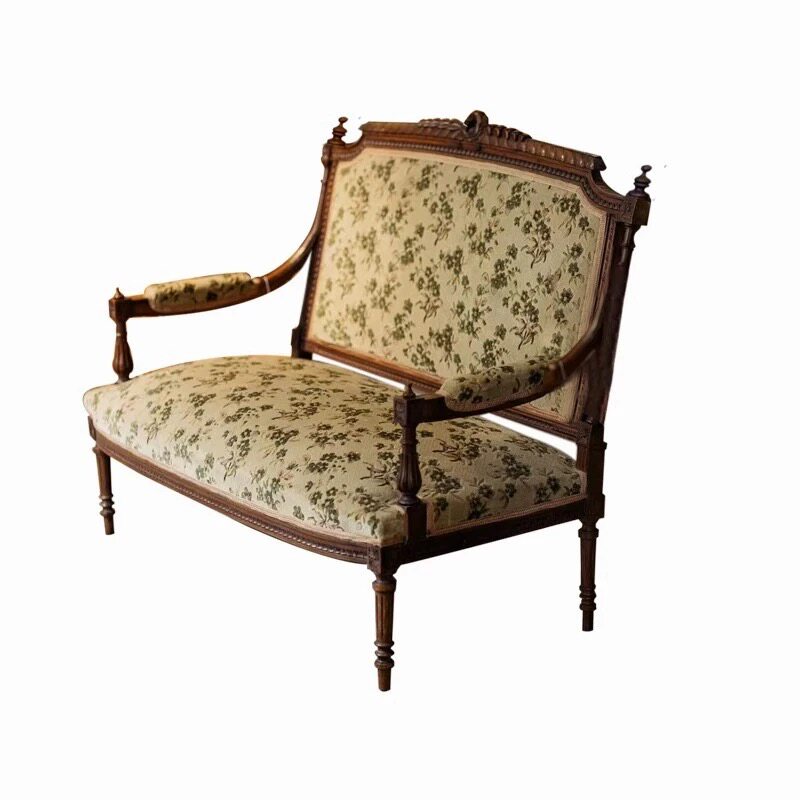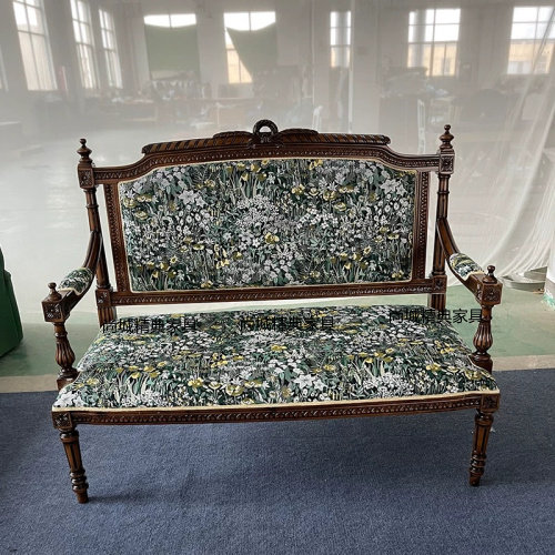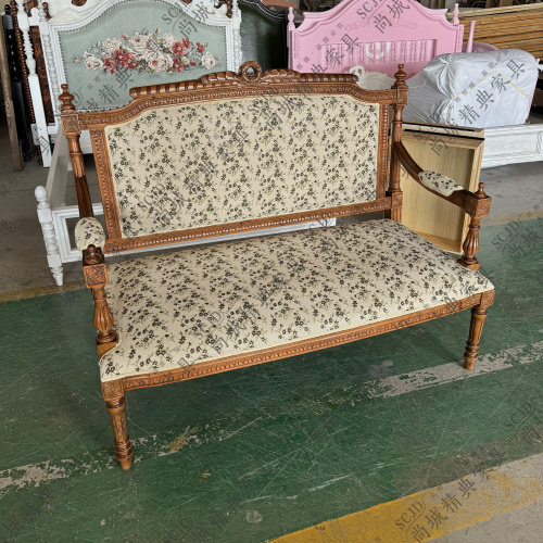 法式新古典实木雕花沙发小户型中古布艺沙发复古南洋风双人家用