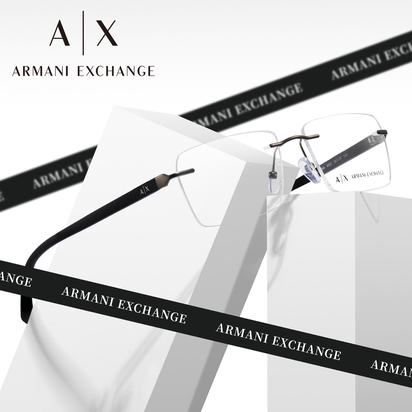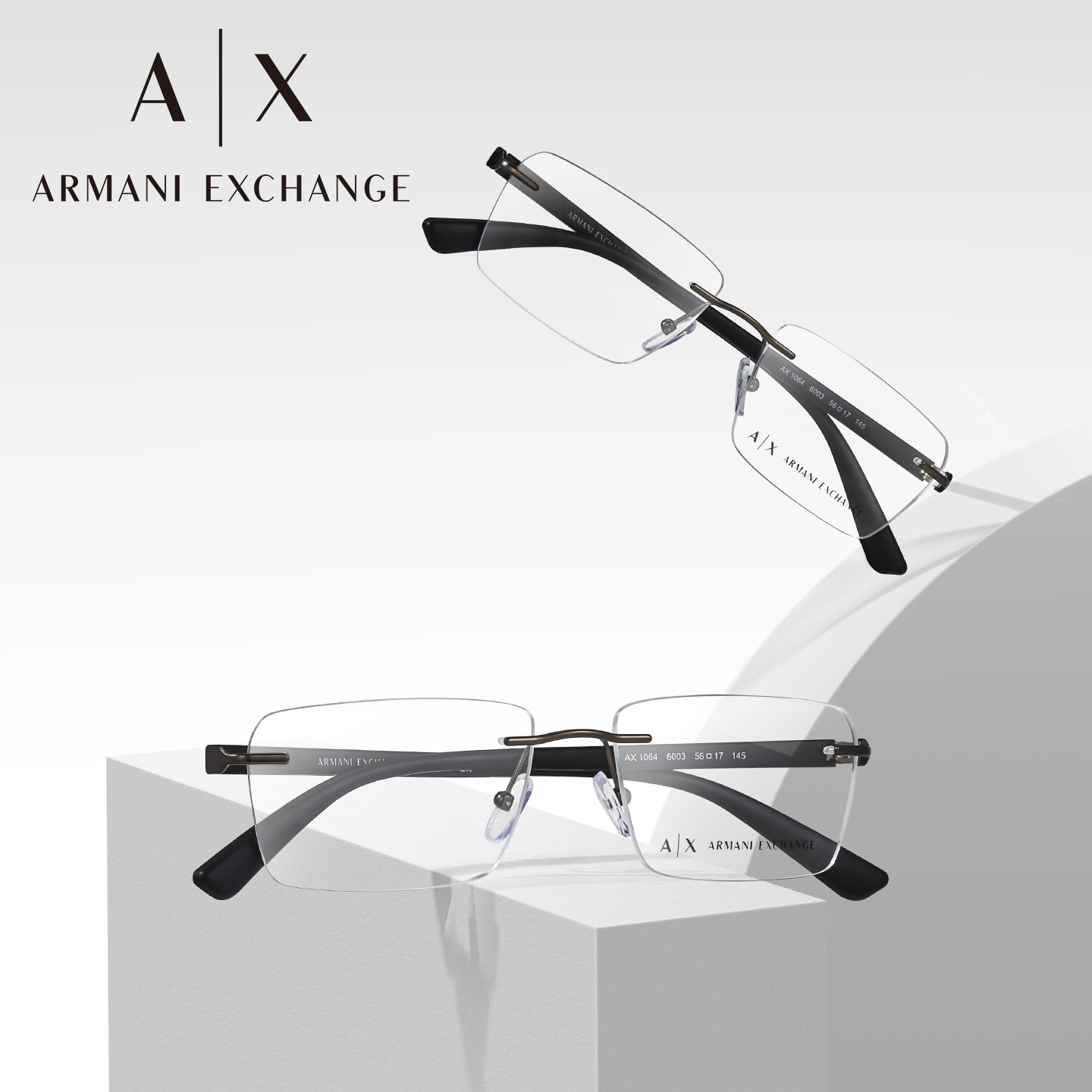 ARMANI阿玛尼眼镜框男士商务无框简约方框眼镜架可配近视AX1064