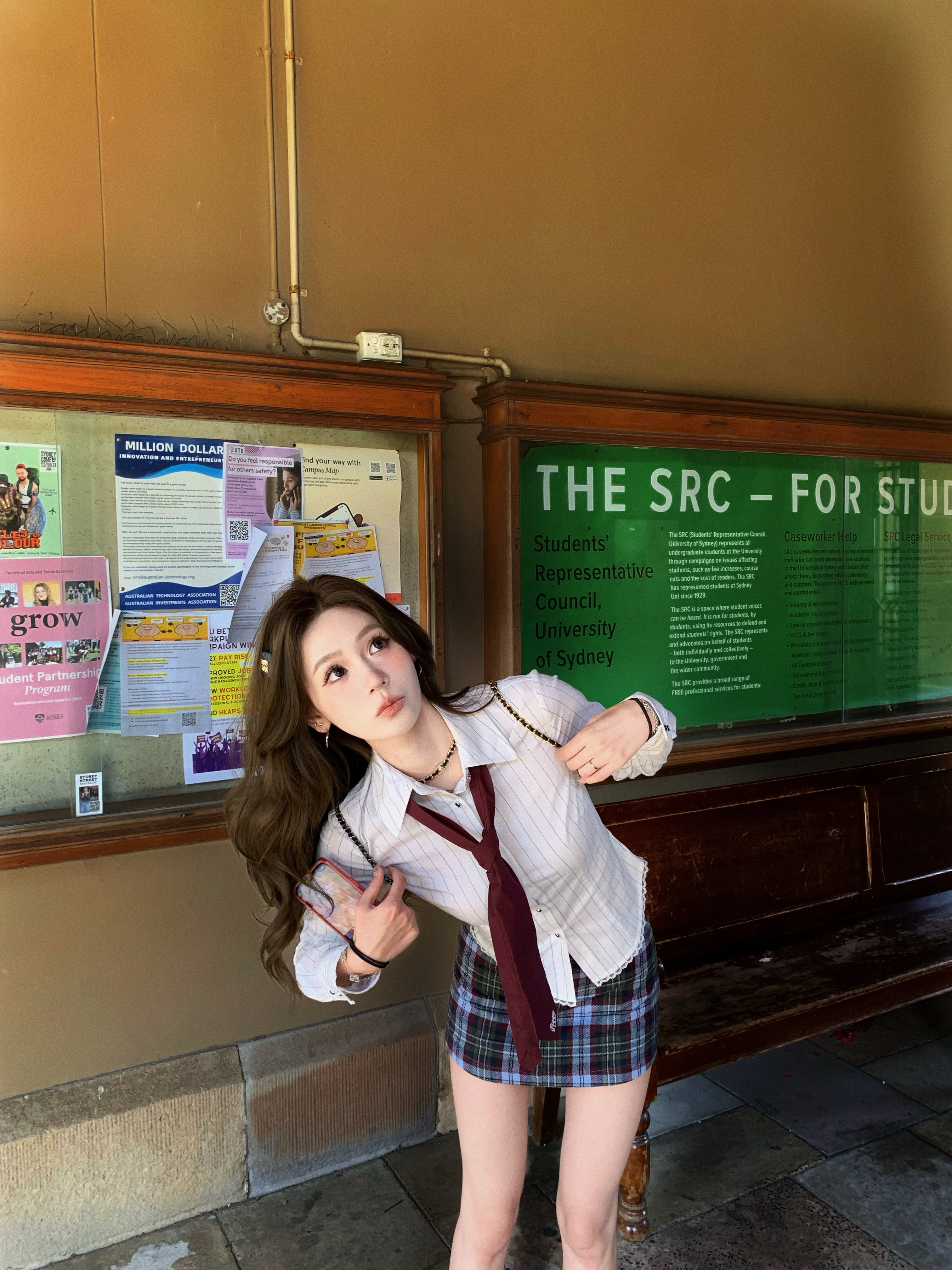 八盖pinky piggy 澳大学姐 学院风套装女收腰衬衫马甲短裙三件套
