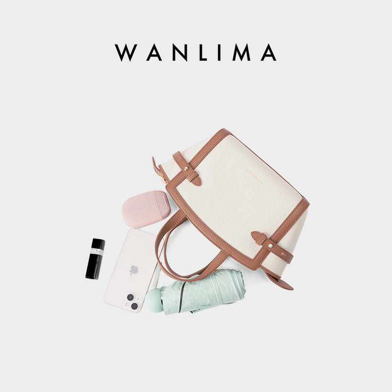 万里马单肩斜挎手提包女包手提袋简约休闲单肩包撞色通用款休闲包