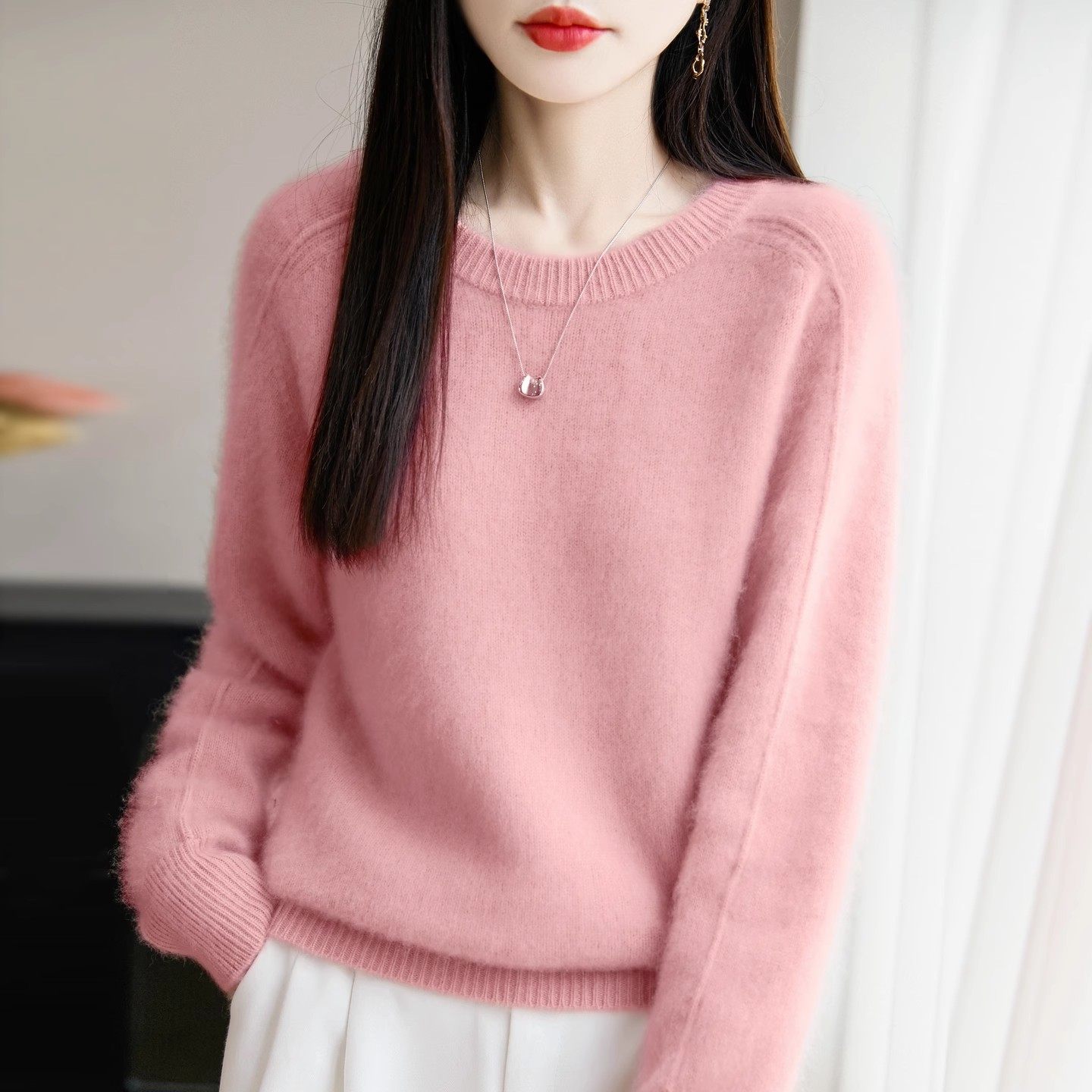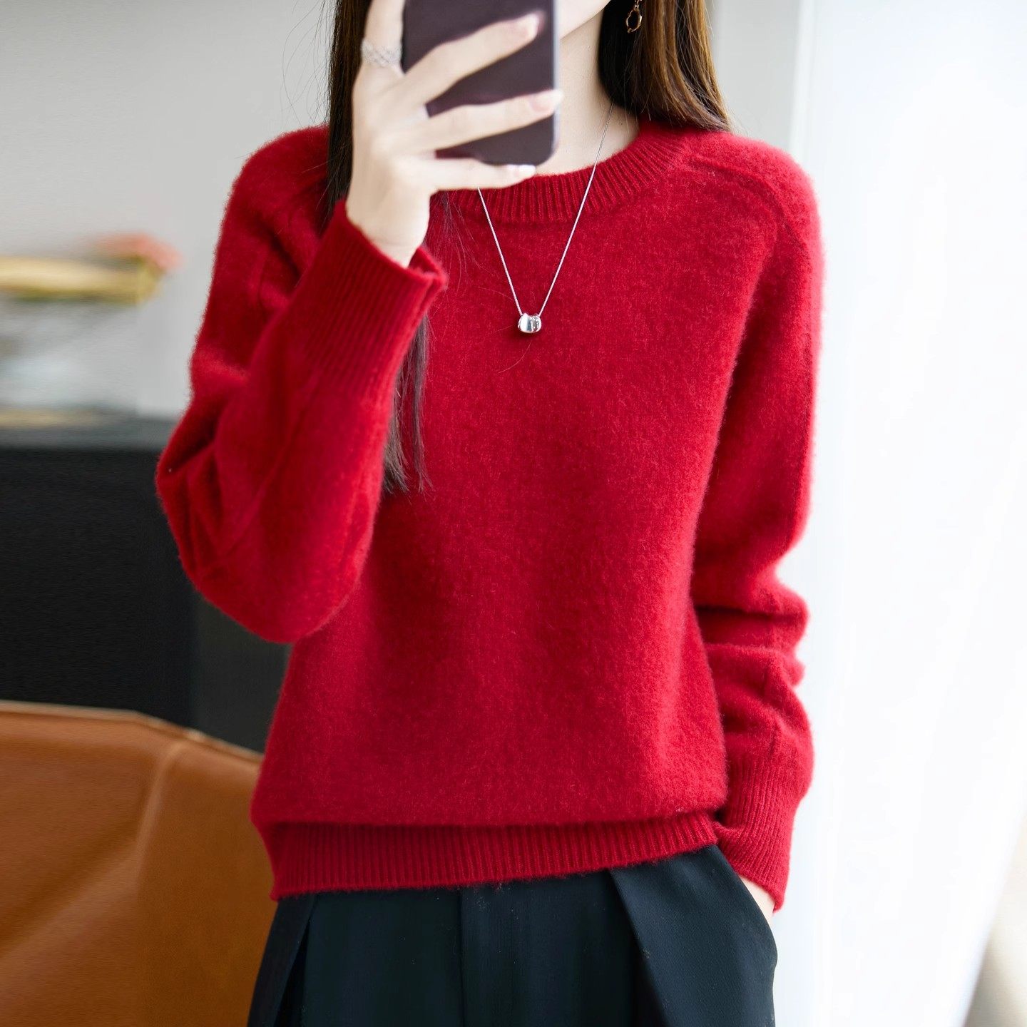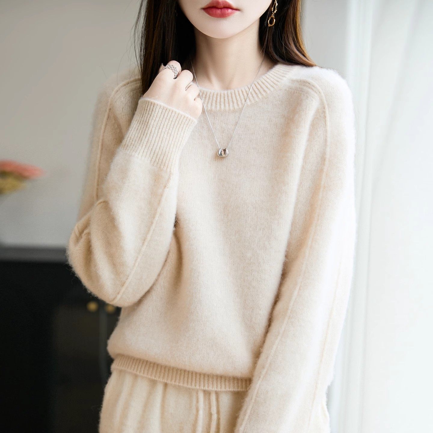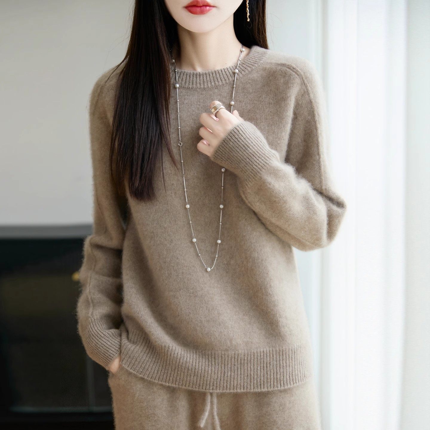 秋冬灰色加厚洋气圆领毛衣女纯色套头内搭针织宽松打底衫气质上衣