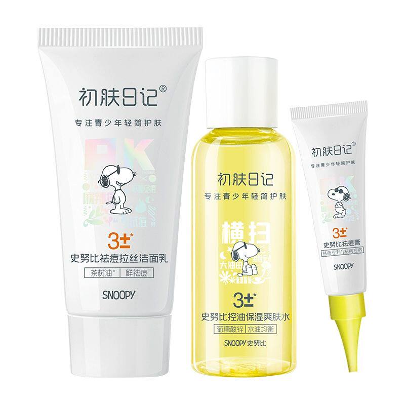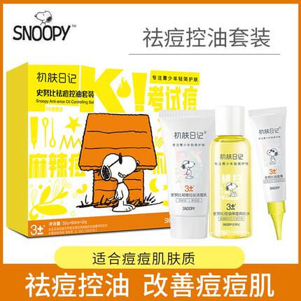 史努比祛痘控油套装青少年少女男孩洁面乳控油祛痘胶啫喱爽肤水