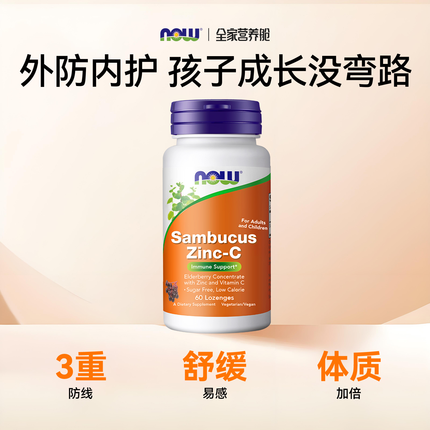NOW诺奥接骨木锌浓缩儿童VC维生素C补充锌营养免疫抵御力美国进口