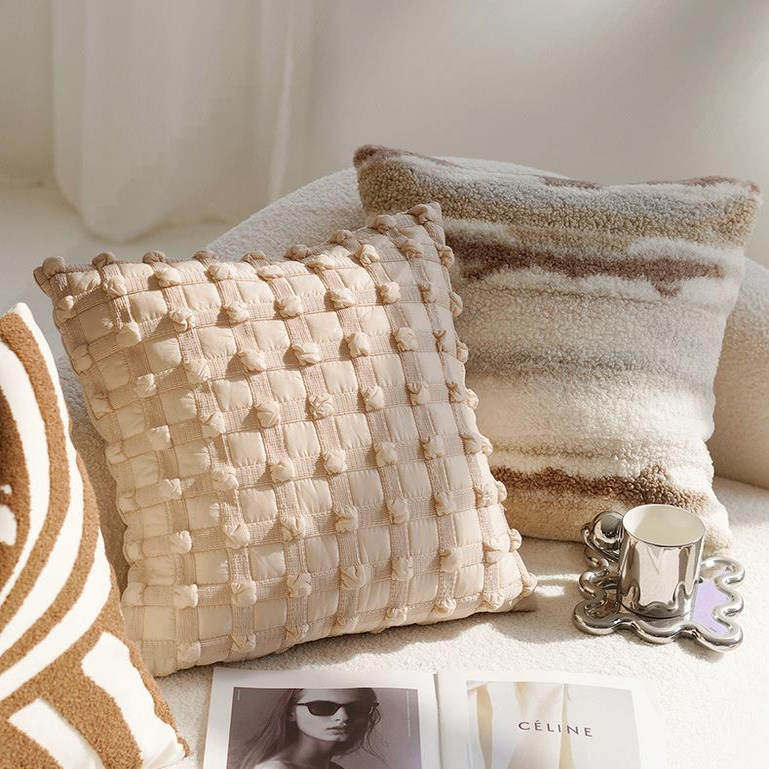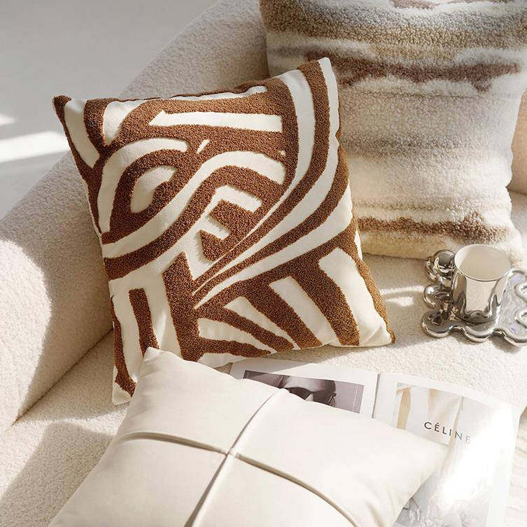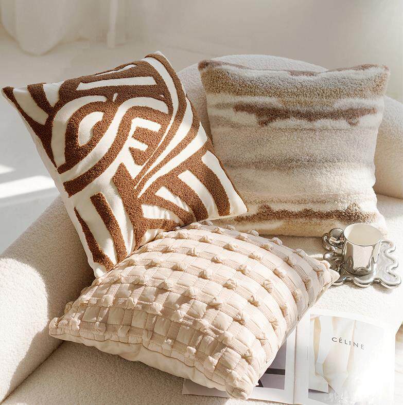 奶油色高级复古风打结抱枕套沙发床上棕色床上腰靠枕靠垫含芯飘窗