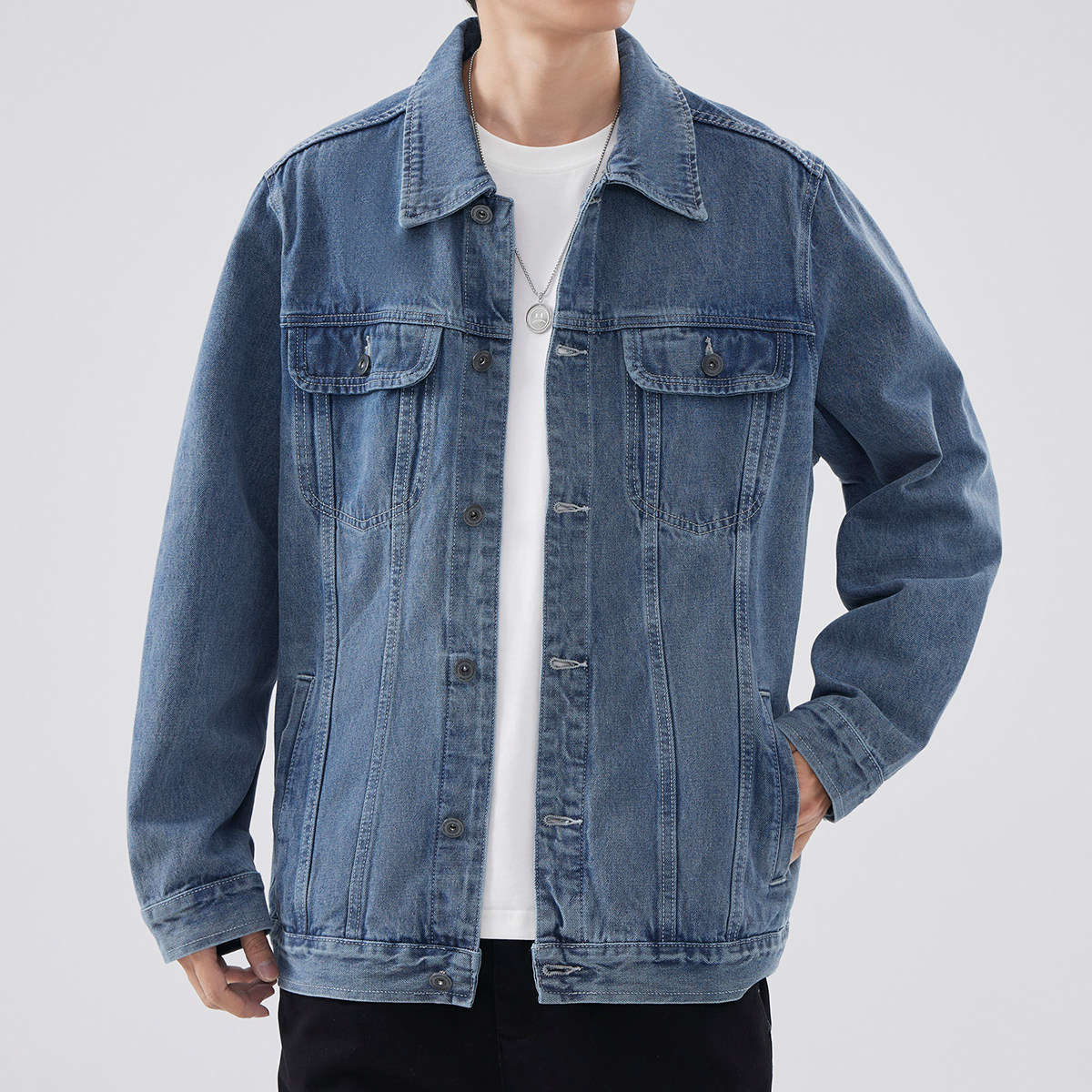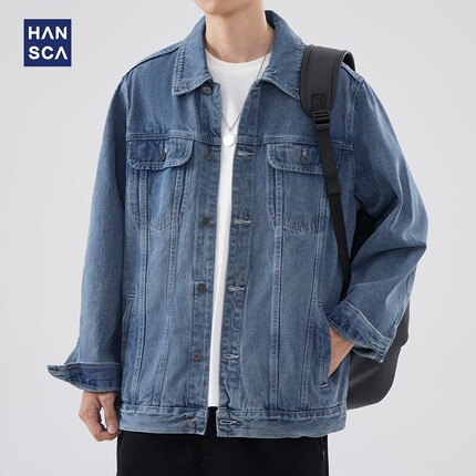 Hansca秋季牛仔外套男宽松休闲潮