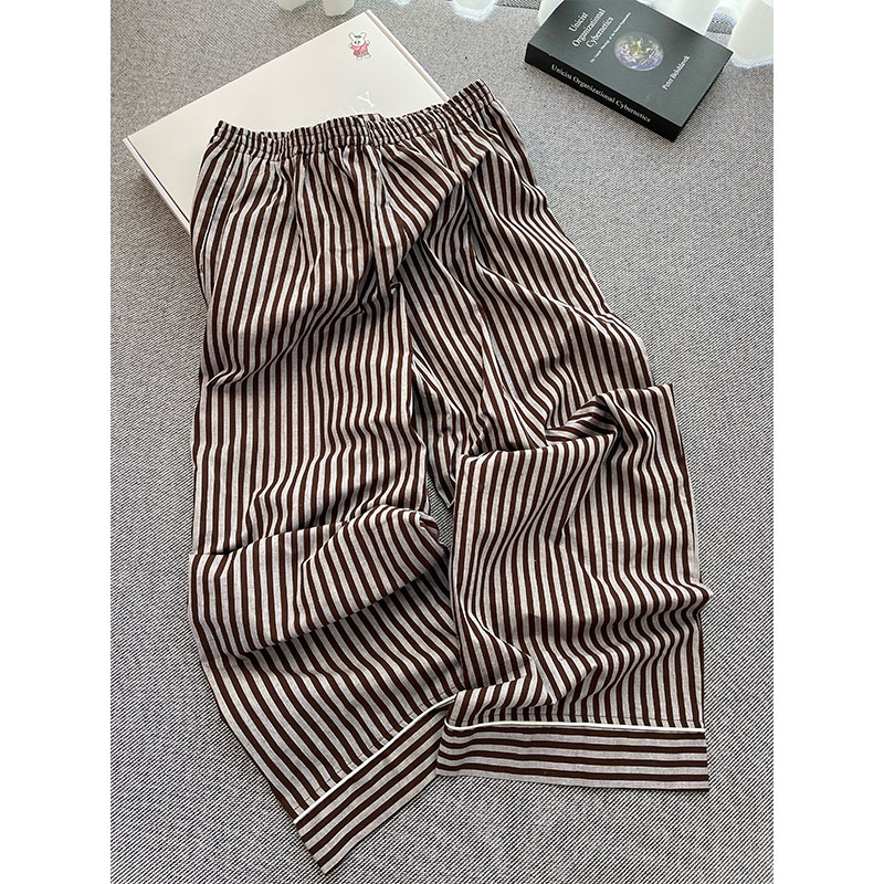 韩系慵懒风休闲条纹睡衣女春秋2025新款可外穿长袖长裤家居服套装