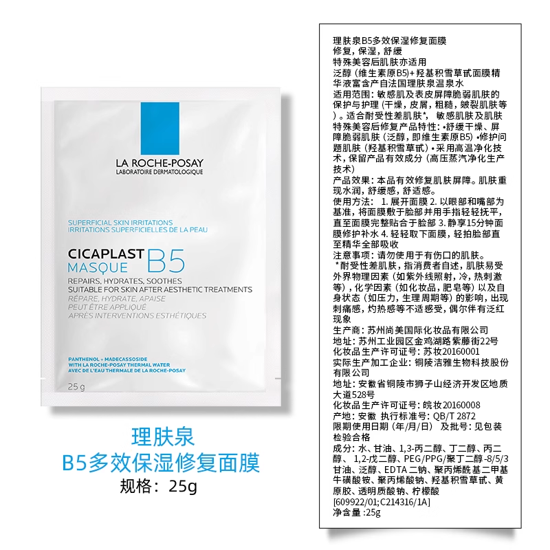理肤泉B5多效保湿修复面膜舒缓敏感痘痘肌面膜尝鲜装